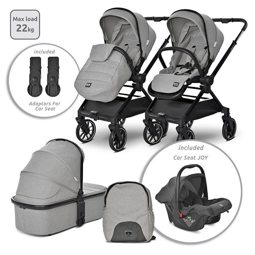 Lorelli Reya 3az1-ben multifunkciós babakocsi átfordítható tolókarral + Joy autóshordozó - Grey