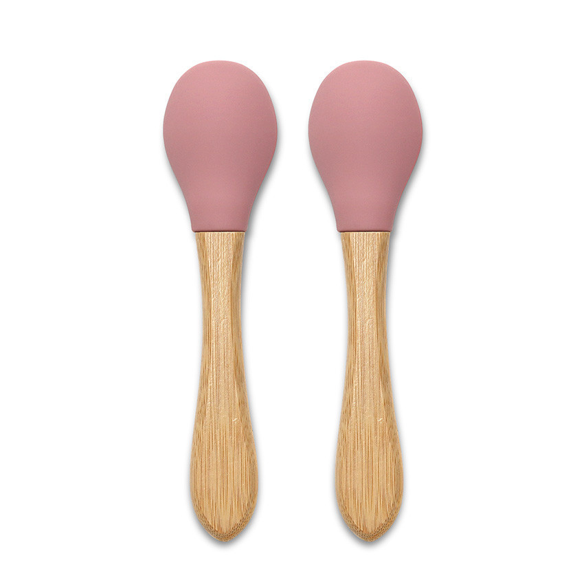 Lorelli Szilikon kanalak bambusz nyéllel, 2db - deep pink