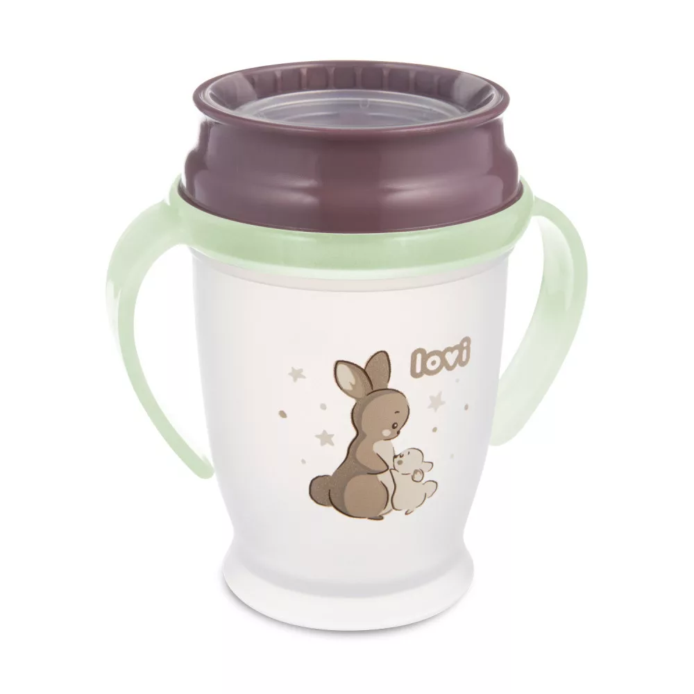 A LOVI 360° NIGHT&DAY pohár, világító fogantyúkkal, ideális gyerkőcöd számára, ha már készen áll arra, hogy önállóan igyon. Lehetővé teszi, hogy a pohár teljes peremén igyon anélkül, hogy kiömlene.