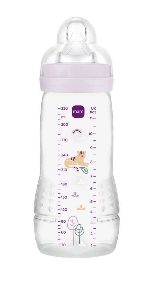 A MAM Easy Active™ cumisüveg ergonomikus formája jól illeszkedik a pici kezekbe, elősegítve a függetlenséget és rugalmasságot az etetés során.
