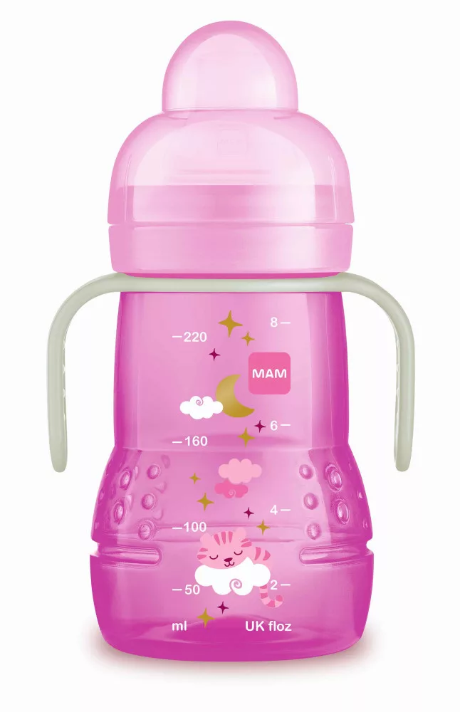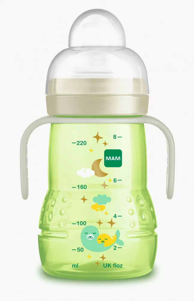 Sötétben világító fogóka. Éjszakai mintás kollekció. A MAM Trainer tanulópohár a funkcionalitás és dizájn tökéletes egysége. Csepegésmentes etetőcumival és extra puha, szimmetrikus ivócsőrrel - a könnyű váltásért a szoptatás és az ivópohár között.