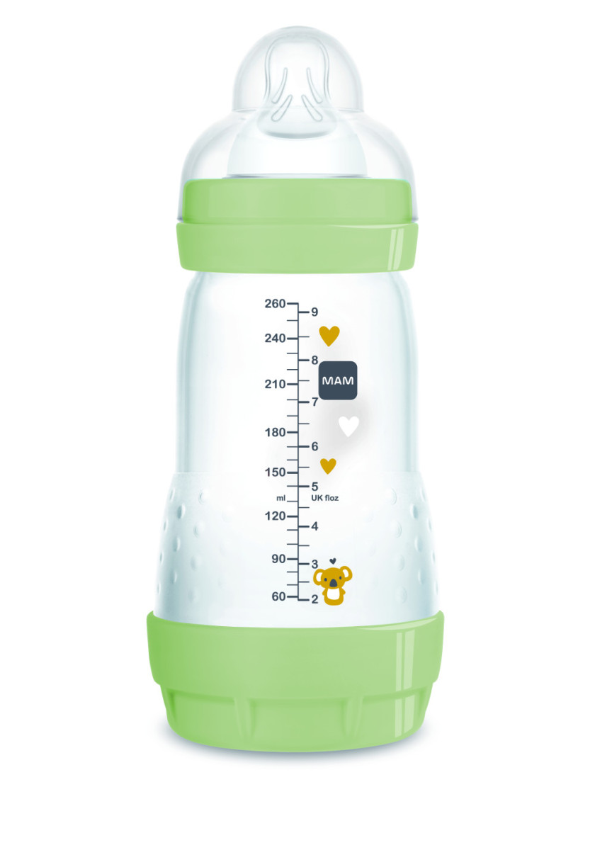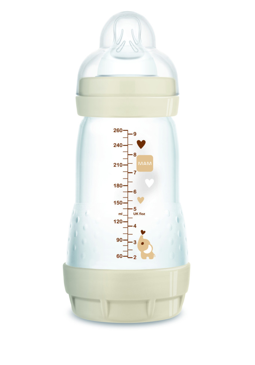 A MAM Anti-Coli cumisüveg puha, lapos etetőcumija olyan érzést kelt a kisbabádban, mint szoptatás közben, így ez a cumisüveg teljesen ideális a szoptatással való kombináláshoz. Ráadásul MAM szabadalmaztatott, szelepes aljnak köszönhetően a tej megszakítás nélkül tud folyni a cumisüvegből. Az üveg alján lévő szellőzőlyukaknak köszönhetően pedig egyáltalán nem képződik sem buborék, sem pedig hab, mellyel elkerülhető a kólikás hasfájás. A cumisüveg könnyen tölthető és tisztítható, sőt egyedülálló önsterilizáló funkcióval is rendelkezik, mellyel egyszerűen és gyorsan kifertőtlenítheted.