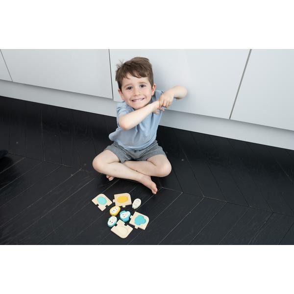 Ez a fából készült kirakó/párosító játékkal már egész kiskorában fejlesztheted gyermeked! Először is 4 formát kell egymáshoz igazítani, hogy összeálljon a teljes alap, ezután kerülhet minden vidám állatka a helyére. A játék fejleszti a szem-kéz koordinációt, a logikus gondolkodást, segít az állatok, a színek és az alakzatok megismerésében. Vastag fadarabokból készül, hogy a pici kezek is könnyen megragadhassák az egyes alkotórészeket. Anyaga rétegelt lemez, színét méregmentes, vízbázisú festék adja. Tökéletes ajándék a totyogós korú babáknak!