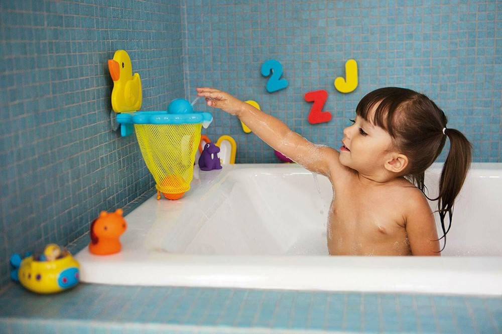 Munchkin fürdőjáték a jövő kis kosarasainak. A csempére tapasztható fürdőjáték, kacsás kosárlabda háló 3 labdával, ami elszórakoztatja és aktivizálja a gyermekeket pancsizás közben. Nyáron akár a strandra is elvihetjük!