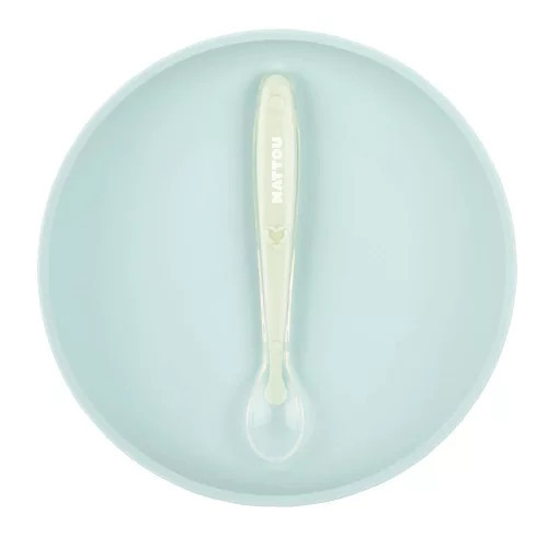 Ez a cuki Nattou szilikon étkészlet nemcsak szemet gyönyörködtető, de szuper praktikus is. A két részes szettben találsz egy lapostányért és egy hozzá passzoló kanalat, mely tökéletes páros a hozzátáplálás kezdetétől egészen a nagyobb falatokig.