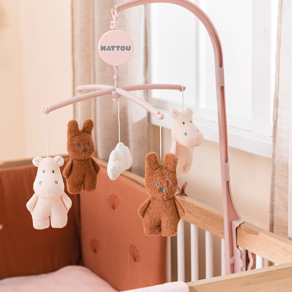 Ismerkedj meg a Nattaou zenélő, plüss körforgóval, ami lágy mozgásával és megnyugtató dallamaival segíti babád édes álomba merülését. Könnyen rögzítheted a kiságyra.