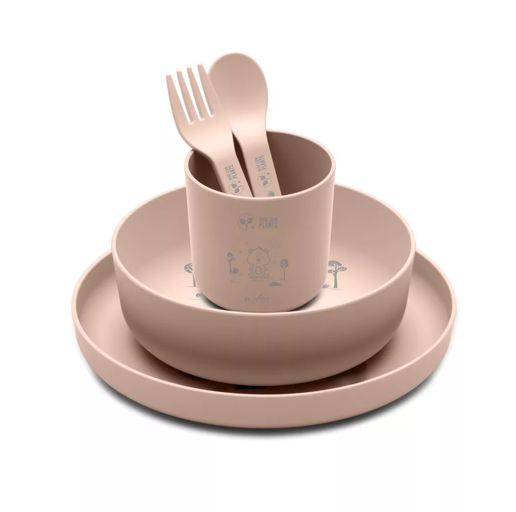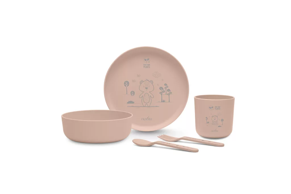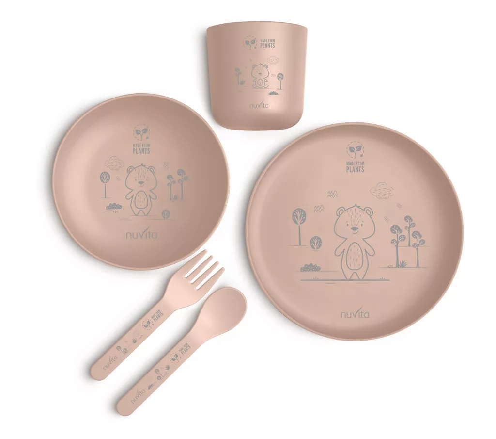 Teljes étkészlet bioplasztikból az önálló étkezés támogatásához