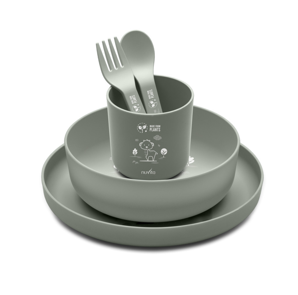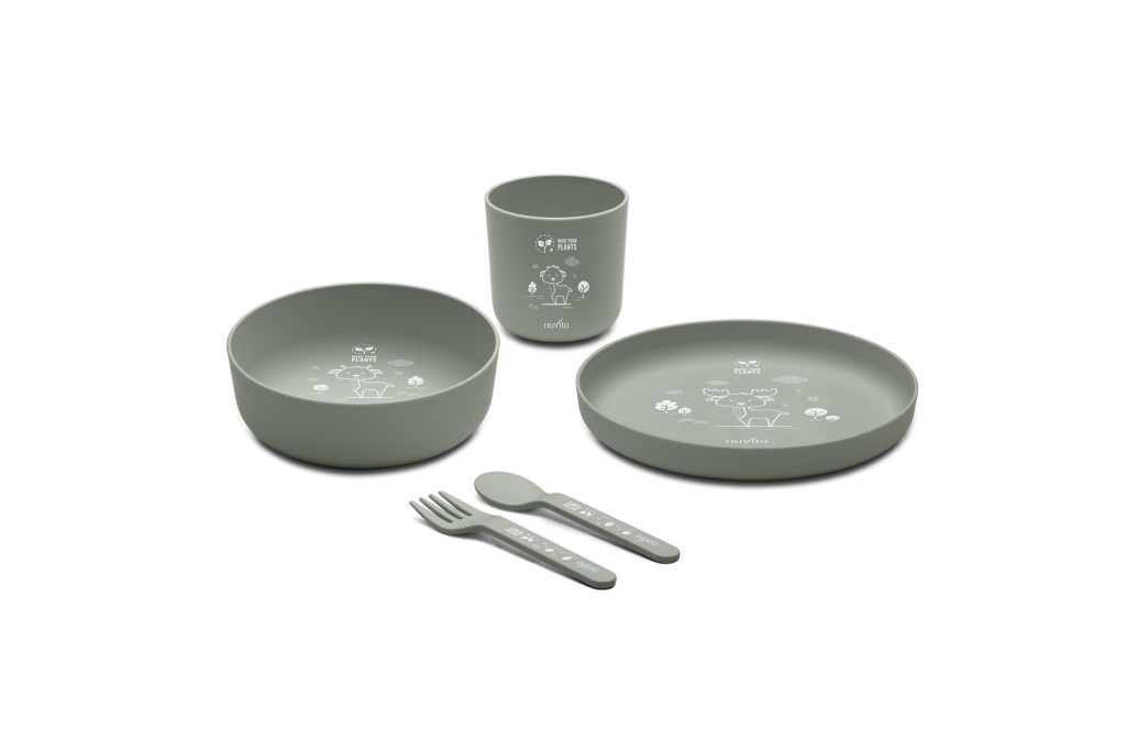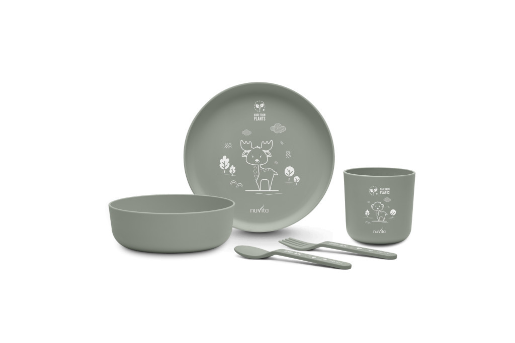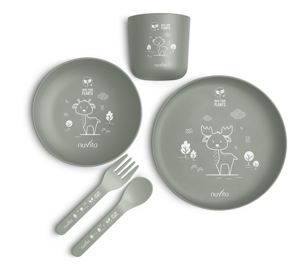 A Nuvita bioplasztik etető szettje tökéletes megoldás a hozzátáplálás időszakára és azon túl is. A magas peremű tányér és tál megakadályozza a fröccsenéseket, míg a könnyen megfogható pohár és evőeszközök elősegítik a gyerekek önállóságát az étkezések során.