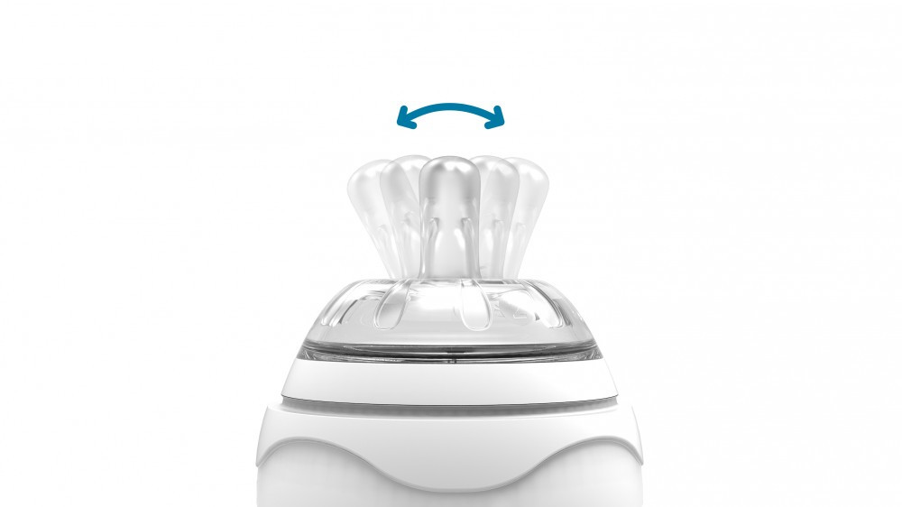 Alkalmas anyatejhez és más folyadék adagolásához. Utánozza a mell formáját, mozgását és fizikai érzetét tekintve, a baba szája szélesen helyezkedik el rajta.