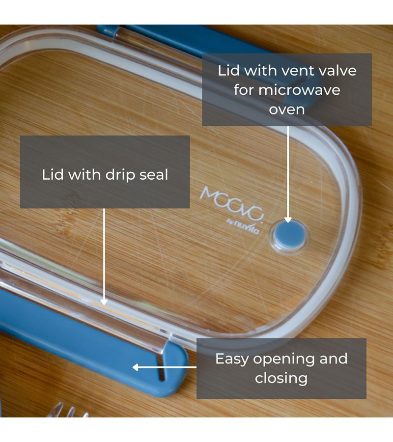 A Nuvita uzsonnás doboz egyszerűen és biztonságosan használható, ideális iskolában, vagy akár kiránduláskor. Könnyen nyitható fedele lehetővé teszi a tökéletes zárhatóságot.
