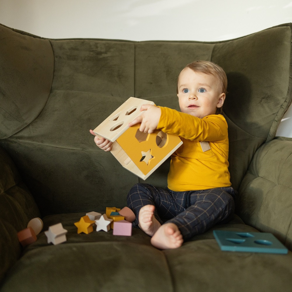 A Gravity fa formaválogató játék fejleszti 1 éves kisbabád kézügyességét, elősegíti a finommotorikus készségeket, a logikus gondolkodást, és megtanítja számára az ok-okozati összefüggéseket.