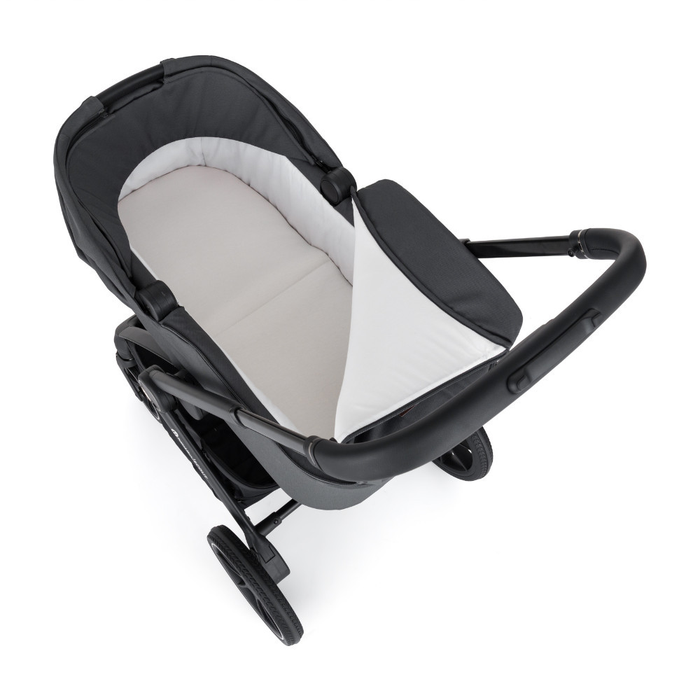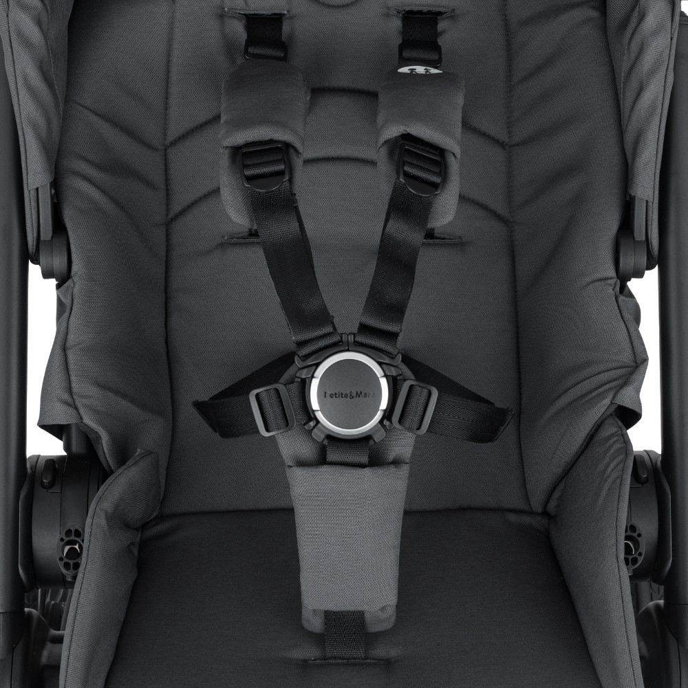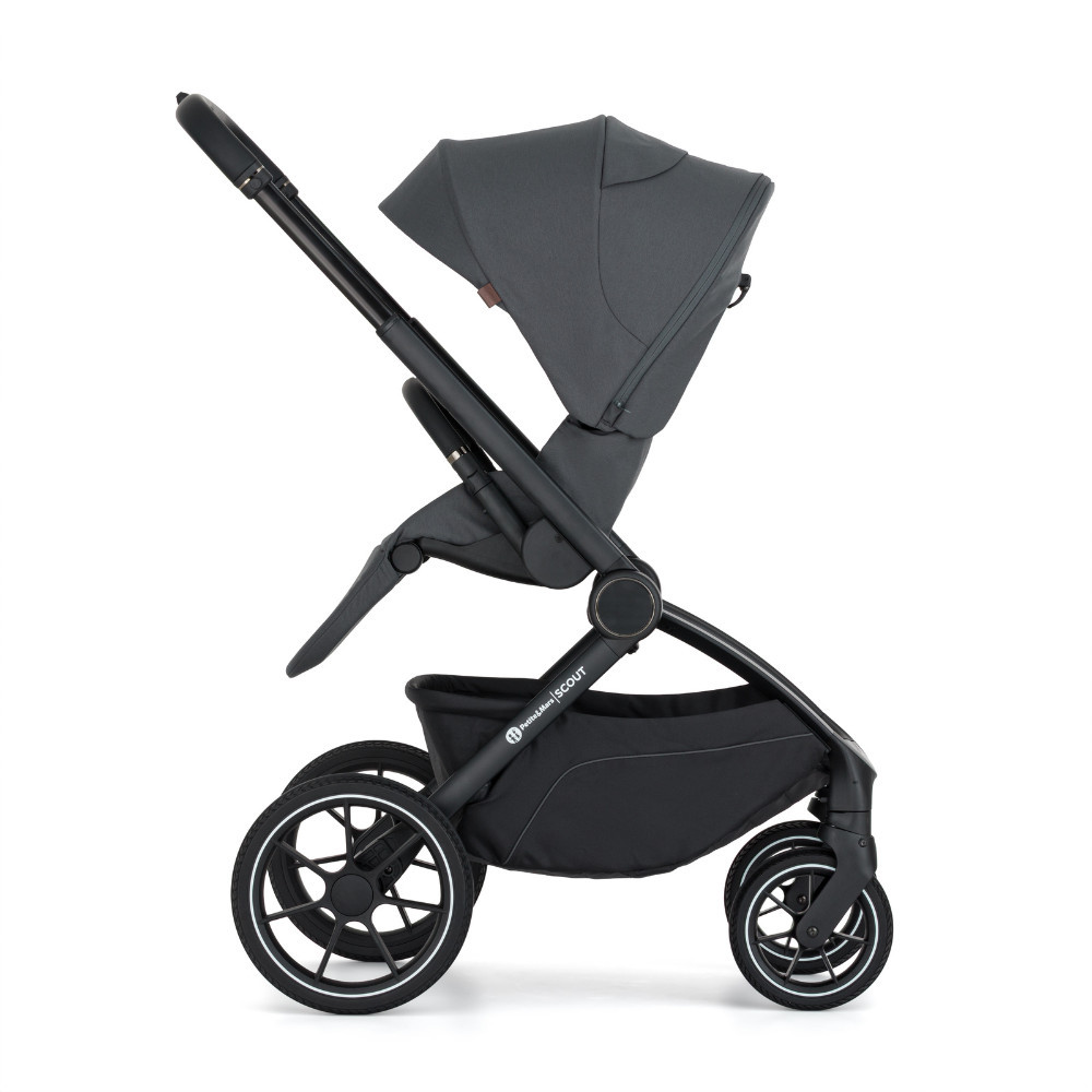 Mindennapi kalandok okos dizájnban Lépjen be az új életszakasz kalandjába könnyedséggel és kényelemmel. A SCOUT babakocsival több szabadságot élvezhet a mindennapi séták és a családi kirándulások során, miközben az összecsukható mózeskosár helyet takarít meg otthon. A SCOUT azoknak a szülőknek készült, akik szeretnének folyamatosan mozgásban lenni, miközben biztosak akarnak lenni abban, hogy gyermekük már az első napoktól kezdve maximális kényelmet élvez. Ez egy teljes értékű 2 az 1-ben kombináció – stabil, elegáns és praktikus –, amely városi használatra és kirándulásokhoz egyaránt ideális. Az egyszerű összecsukásnak és az átgondolt, biztonsági zárral ellátott rögzítőrendszernek köszönhetően a mózeskosár és a sportülés közötti váltás gyors és biztonságos. A váz masszív, a babakocsi könnyen irányítható, és a mindennapokban az egyszerű kezelhetőséget is értékelni fogja. A nagy első és hátsó PU kerekek, valamint az enyhe rugózás kényelmes haladást biztosítanak még egyenetlenebb terepen is. Születéstől kezdve a SCOUT tágas mózeskosarával és kényelmes matracával biztosítja a gyermek komfortját. Az anyagok a legérzékenyebb bőr számára is alkalmasak – a betét huzata 100% bambuszból, a mózeskosár belső része pedig 100% pamutból készült. A mózeskosár összecsukható, így könnyen tárolható, helyet takarít meg, és utazáskor is praktikus megoldást nyújt. Ahogy a gyermek növekszik, a babakocsi a sportülésnek köszönhetően alkalmazkodik az igényekhez. Az ülés a menetirányba és menetiránnyal szemben is használható. A háttámla három pozícióban állítható, szinte teljesen vízszintes helyzetig, a lábtartó szintén három pozíciót kínál. A cipzáras, meghosszabbítható kupola szülői betekintő ablakkal kellemes árnyékot és nagyobb intimitást biztosít. A biztonságról az 5 pontos, mágneses csattal ellátott biztonsági öv gondoskodik. A szülők kényelmét az állítható tolókar növeli, amely magasabb szülők számára is ideális. Nem hiányzik a mély tárolókosár sem, amelynek teherbírása 3 kg. A szett tartalma: Babakocsi váz kerekekkel Mózeskosár védőhuzattal Sportülés Bevásárlókosár Pelenkázótáska Vízálló esővédő (mózeskosárhoz és sportüléshez is használható) Magasító adapterek a mózeskosárhoz Autósülés-adapterek Az adapterek kompatibilisek az alábbi autósülésekkel: Petite&Mars Core, Cybex Aton 5, Cybex Cloud T, Maxi-Cosi Cabriofix, Maxi-Cosi Pebble, Kiddy Evoluna. Jellemzők Teljes értékű 2 az 1-ben kombináció – mózeskosár és sportülés Egyszerű és kényelmes összecsukás Tágas, összecsukható mózeskosár szellőzéssel A sportülés a menetirányba és menetiránnyal szemben is használható Biztonsági zárral ellátott rögzítőrendszer a gyors és stabil rögzítéshez Háttámla közel teljesen vízszintes helyzetig állítható (3 pozíció) Állítható lábtartó (3 pozíció) Vízlepergető szövetkezelés 5 pontos biztonsági öv mágneses csattal Cipzáras, meghosszabbítható kupola szülői ablakkal Nagy PU kerekek elöl és hátul a kényelmes utazásért Állítható tolókar magasság (96–111 cm) Levehető, elfordítható kapaszkodó logóval Mély tárolókosár 3 kg teherbírással A csomag tartalma Pelenkázótáska Vízálló esővédő Magasító adapterek a mózeskosárhoz Autósülés-adapterek Műszaki adatok Kerekek méretei Első kerék átmérője: 8" (20 cm) Hátsó kerék átmérője: 11,5" (29 cm) A babakocsi méretei – kinyitva Hossz: 92 cm Szélesség: 60 cm Magasság: 96–111 cm A babakocsi méretei – összecsukva Hossz: 62 cm Szélesség: 60 cm Magasság: 46 cm Ülés és fekvőfelület méretei Ülés szélessége: 29,5 cm Ülés mélysége: 22,5 cm Háttámla hossza: 51 cm Lábtartó hossza: 20,5 cm Teljes fekvőfelület hossza: 94 cm Mózeskosár Mózeskosár méretei: 84 × 64 × 46 cm Betét méretei: 77 × 32 × 3 cm Tárolókosár Méretek: 60 × 61 × 46 cm Teherbírás: 3 kg Súly Váz: 8,0 kg Mózeskosár: 3,8 kg Sportülés: 3,2 kg Teljes súly mózeskosárral: 11,8 kg Teljes súly sportüléssel: 11,2 kg A szállító címe: ags 92, s.r.o., Drahobejlova 2515/18, 190 00 Prága, Cseh Köztársaság info@petiteetmars.com FIGYELMEZTETÉS: Soha ne hagyja a gyermeket felügyelet nélkül. Használat előtt figyelmesen olvassa el a használati útmutatót, és őrizze meg későbbi használatra. A termék összeszerelését és beállítását kizárólag felnőtt végezheti. Használat előtt távolítsa el és semmisítse meg az összes csomagolóanyagot és műanyag tasakot, és tartsa azokat gyermekektől elzárva. Minden használat előtt ellenőrizze, hogy a babakocsi minden része megfelelően rögzítve van-e. A termék nem alkalmas futásra vagy görkorcsolyázásra. Mindig használja a biztonsági öveket és a fékeket az útmutató szerint.