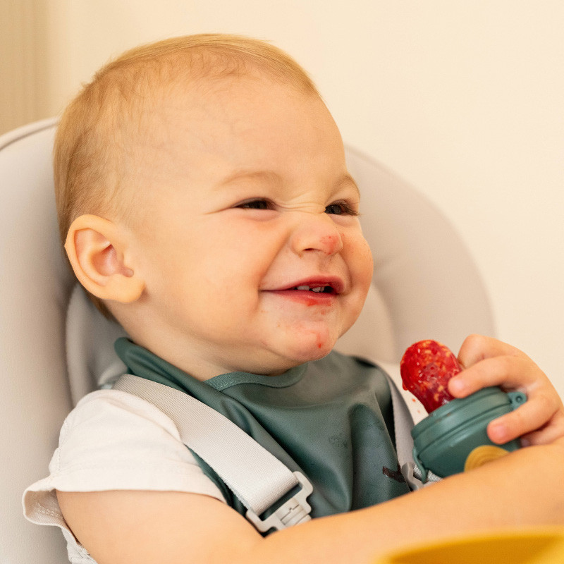 Biztonságos szilárd ételek a baba számára A Fruzi az ideális etető cumi, amely segít a babának biztonságosan megkóstolni a szilárd ételeket, miközben enyhíti a fogínyfájdalmat. Tökéletes a babák számára 6 hónapos kortól. 100% biztonságos szilikonból készült. A Fruzi lehetővé teszi, hogy gyümölcsöt, zöldséget vagy főtt ételt a csecsemők számára legmegfelelőbb formában tálaljon. A szilikon hegyén lévő kis nyílások lehetővé teszik, hogy a kis adagok ellenőrzött módon áthaladjanak az ételből, csökkentve a nagy darabok lenyelésének kockázatát és biztosítva a biztonságos táplálást. Ergonomikus kialakításának és intelligens funkcionalitásának köszönhetően a Fruzi nem csupán egy etetőeszköz, hanem egy nélkülözhetetlen rágóka is, amely enyhülést hoz a fájó ínyre. Ideális segítség az ételek bevezetéséhez 6 hónapos kortól. Főbb jellemzők: · A szilárd ételek biztonságos bevezetése - segít a babáknak felfedezni az új ízeket és textúrákat fulladás veszélye nélkül · 2in1: etető cumi és rágóka - ideális a fogzás idején az íny megnyugtatására. · Puha szilikon hegy - kíméletes az ínyhez, ideális az érzékeny területek masszírozásához · Kis nyílások - lehetővé teszi a gyümölcslevek és a lágy pürék átjutását nagyobb darabok nélkül · Védőfedél - higiénikus tárolást biztosít otthon és útközben is · Ergonomikus fogantyú - könnyen megfogható a kisbabák ujjai számára · Könnyen nyitható és zárható - praktikus pattintós zár a gyors utántöltéshez Specifikáció: Anyag: 1 db: Szilikon BPA-mentes Ajánlott életkor: 6 hónapos kortól Méretek: 12 × 6 × 4 cm A csomag tartalma: etető cumi szilikonheggyel + védőfedél FIGYELMEZTETÉS! Ez a termék nem játék. A baba biztonsága és egészsége érdekében az első használat előtt távolítsa el a csomagolás minden részét és a rögzítőelemeket. Kerülje az éles tárgyakkal való érintkezést, amelyek károsíthatják a termék felületét. A szilikon tartály elszíneződhet, de ez nem befolyásolja a funkcióját. Mindig felnőtt felügyelete mellett használja. Minden használat előtt ellenőrizze a terméket. Tartsa távol a tűztől. A terméket az anyag sérülésének vagy gyengülésének első jelére dobja ki. Őrizze meg a csomagolást és a termékinformációkat a későbbi használatra. A forgalmazó címe: ags92 s.r.o., Drahobejlova 2515/18, 190 00 Prága, Csehország info@petiteetmars.com