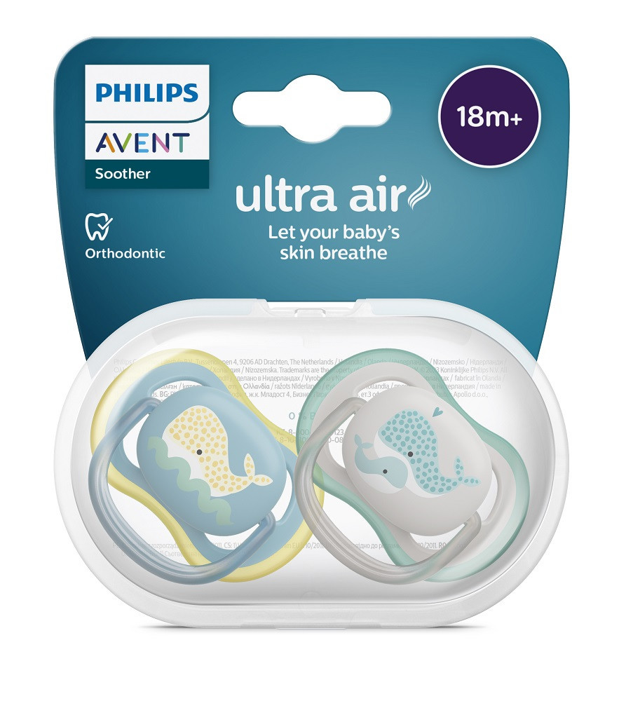 A Philips Avent Ultra Air játszócumi extra nagy levegőnyílásokkal rendelkezik, így kisbabád bőre száraz marad.