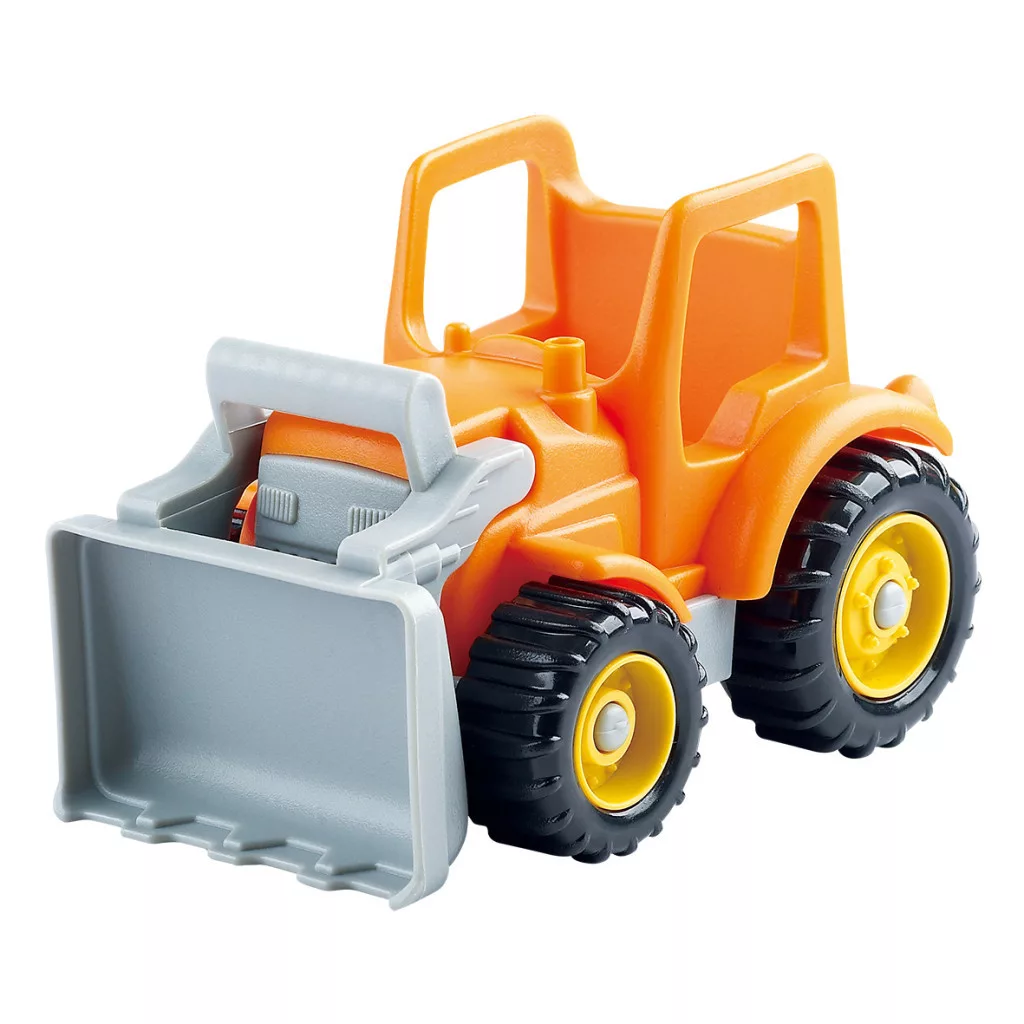Műanyag markoló forgó kerekekkel és mozgatható markoló résszel. A munkagép nyitott fülkéjébe megfelelő méretű játékfigura helyezhető.