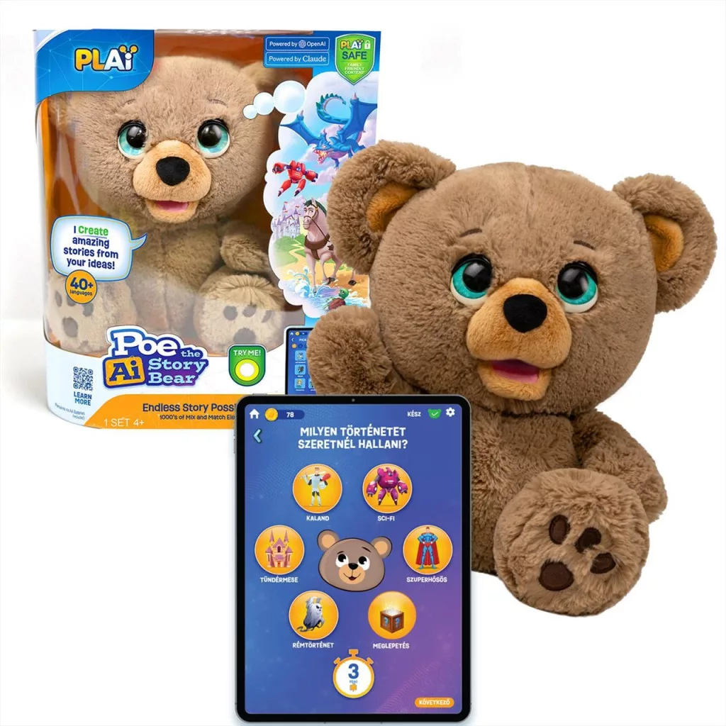 Képzeld el, hogy a plüss mackód egy titkos barát, aki minden este csak neked elmond egy mesét. Képzeld el, hogy ez a maci tényleg létezik: bemutatkozik Poe, aki mesterséges intelligenciával rendelkezik, és olyan mesét mond neked, amilyet hallani szeretnél. Királyságok? Sárkányok? Szuperhősök? Csaknem minden nyelvhez és kultúrkörhöz alkalmazkodik, még magyarul is regél neked. Ellenőrzött, gyermekek számára alkalmas AI technológiával, már 4 éves kortól.