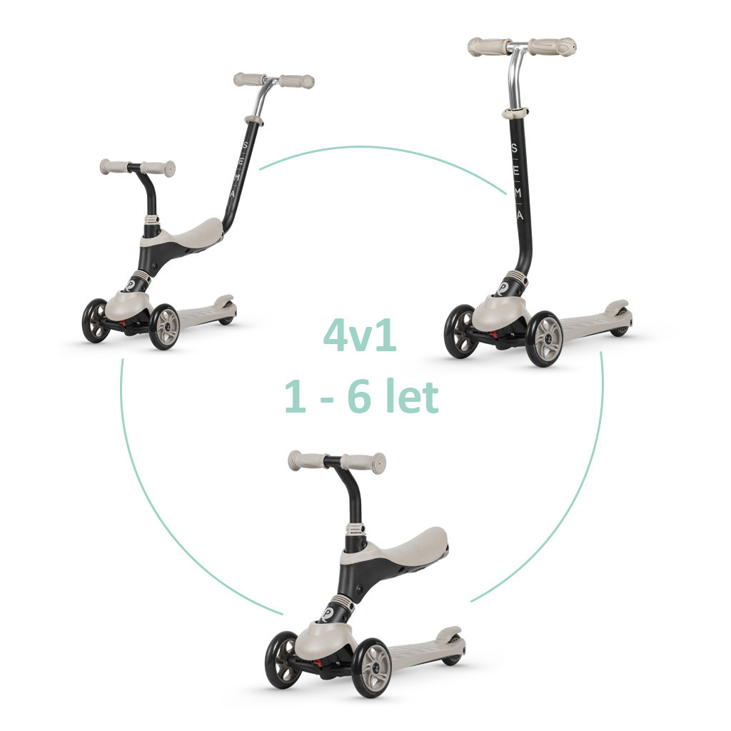 QPLAY Sema 5in1 Roller / Futóbicikli 1-6 éves korig, 50 kg-ig - Beige