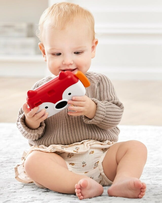 Egy, kettő, három... mondd, hogy "sajt"! Engedd, hogy a kicsi felfedezze a világot ezzel az aranyos Skip Hop Explore & More rókás fényképezővel – egy interaktív játék, amely játékosan fejleszti a baba érzékszerveit és finommotorikáját!