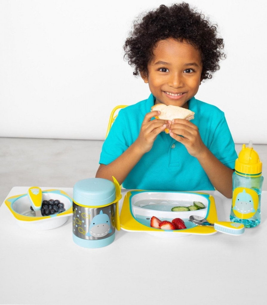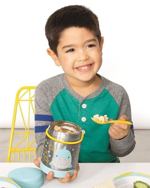 Ez a színes rozsdamentes acél tartály melegen vagy hidegen tartja gyerkőcöd ételét. Tartozik hozzá egy kis méretű villa is, ami egyben kanálként is használható. Az evőeszköz praktikusan felakasztható a termoszra, így menet közben is készen áll az étkezésre. A rozsdamentes acélnak köszönhetően 7 órán keresztül melegen tartja az ételt, vagy 5 órán át hidegen.