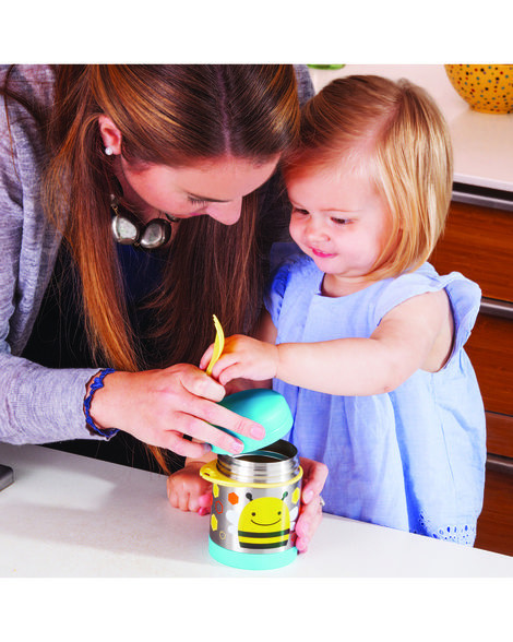 Ez a színes rozsdamentes acél tartály melegen vagy hidegen tartja a gyerek-méretű adagokat. Tárolja a kis méretű villát, ami egyben kanálként is használható. Az evőeszköz praktikusan felakasztható a termoszra, így menet közben is készen áll az étkezésre. A rozsdamentes acélnak köszönhetően 7 órán keresztül melegen tartja az ételt, vagy 5 órán át hidegen.