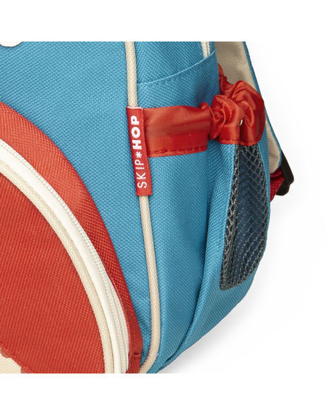 A szeszélyes részletek és a tartós anyagok teszik ezt az Zoo-hátizsákot a tökéletes útitárssá. A hálós oldalsó zseb úgy illeszkedik, hogy beleférjen egy dobozos gyümölcslé, vizes palack vagy kulacs. Az elülső tasak ideális harapnivalókhoz, és tartalmaz extra zsebeket ceruzákhoz és egyéb utazási kellékekhez. A kényelmes párnázott hevederek könnyedén elférnek a kis vállakon.