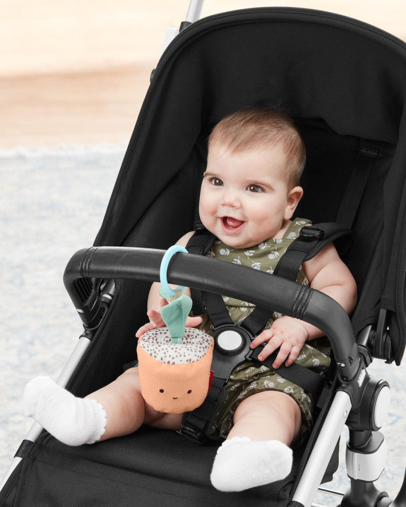 A kis növényrajongók imádni fogják ezt a vidám növényt. A játék csodálatos meglepetéseket rejt a belsejében található csilingelő golyókkal. A játék többféle textúrája kihívást jelent a kicsinek, hogy fejlessze érzékeit és képzelőerejét. A játék ideális otthoni vagy séták közbeni játékhoz, mivel gyorsan és egyszerűen rögzíthető a babakocsihoz.