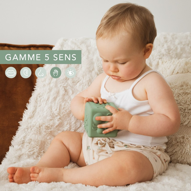 A 100% természetes gumiból készült kocka tökéletesen fejleszti a baba motoros képességeit és tapintását!