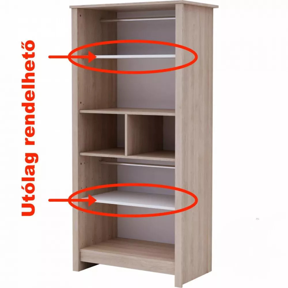 Dobd fel a nagyszekrényed belső tereit ezzel a praktikus polccsomaggal, mely letisztult és stílusos. A 2 extra polccal könnyedén rendszerezheted a ruhákat, játékokat vagy kiegészítőket az akasztós-zárt részen.