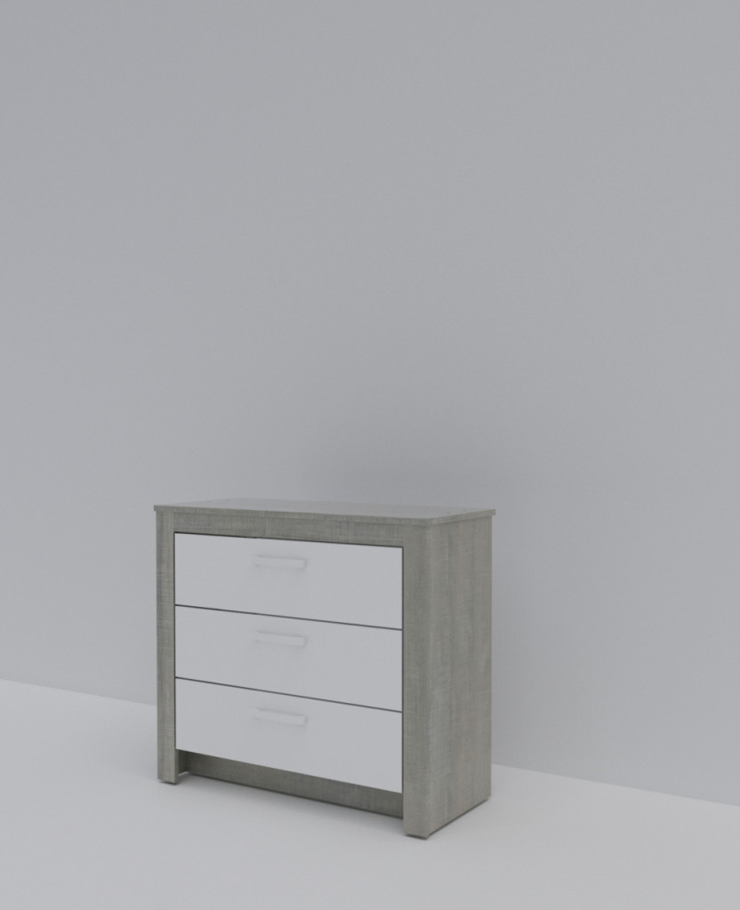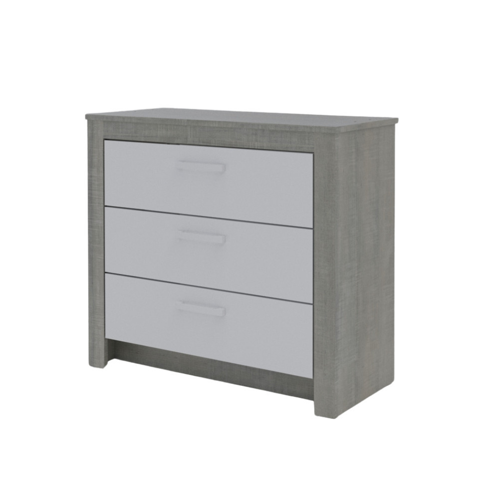 Szürke osló tölgy + magasfényű fehér párosításával modern és otthonos! Ez a komód mindent tud, amit egy praktikus bababútornak tudnia kell. Három tágas, simán csukódó fiókja könnyedén elnyeli a pelenkázós kiegészítőket, ruhákat vagy takarókat.