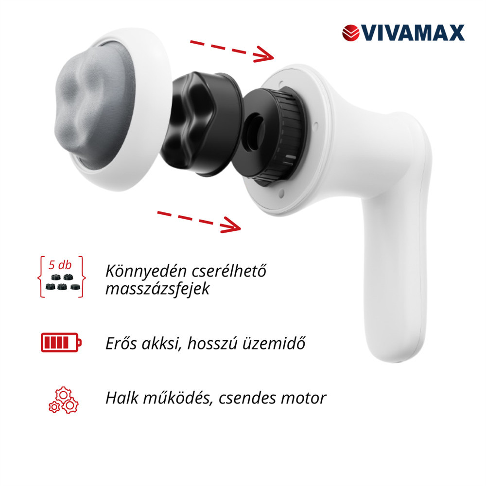 Az egyénre szabott, energetizáló hatású masszázsterápia igazi segítség azoknak, akik görcsös, merev izmokkal küzdenek. A kézi masszírozó erős, magas frekvenciájú masszázzsal aktiválja az izmokat, serkenti a véráramlást, jelentősen csökkentheti az izmok regenerálódási idejét és enyhíthet egyes izompanaszokat. Ergonomikus formájának és cserélhető masszázsfejeinek köszönhetően számos testtájon hatékony: használhatja izomfájdalmak (nyak-, váll-, hát-, láb és derékfájás stb.) esetén, de rendszeres használata enyhítheti a stressz és az ebből adódó álmatlanság tüneteit is. Mindemellett növelheti a mozgás hatékonyságát és javíthatja a test lágyszöveteinek egészségét. Növeli az izmok véráramlását edzés előtt, edzés után pedig csillapíthatja az izomfájdalmat. A készülékhez 5 masszázsfej tartozik, amelyeket a test különböző részeinek masszírozására fejlesztettek ki. Kialakításának köszönhetően különösen alkalmas nagyobb testtájak átmasszírozására, mint például comb vagy hát.