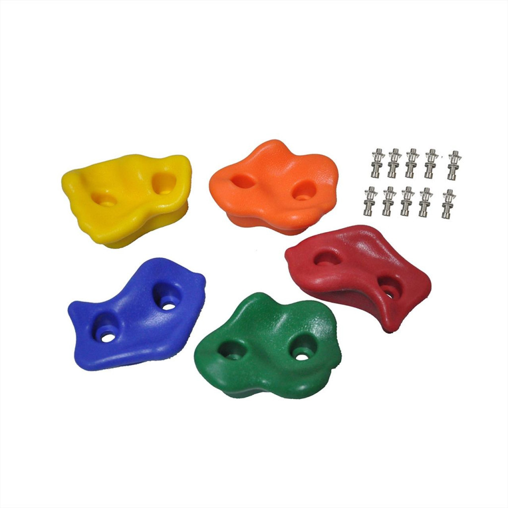 Készíts kalandos kerti kihívást a Wonderland mászókövekkel! Ez a szett 10 darab eltérő méretű követ tartalmaz, melyeket kedved szerint rögzíthetsz egy erős fatörzsre vagy speciális falakra. A kövek formája és színe változó az egyedi mászóterep kialakításához, illetve a kezdő mászók könnyebb instruálásához. Az első gyakorlatok közben a földi segítő egyszerűen instruálhatja a mászót a színek segítségével.