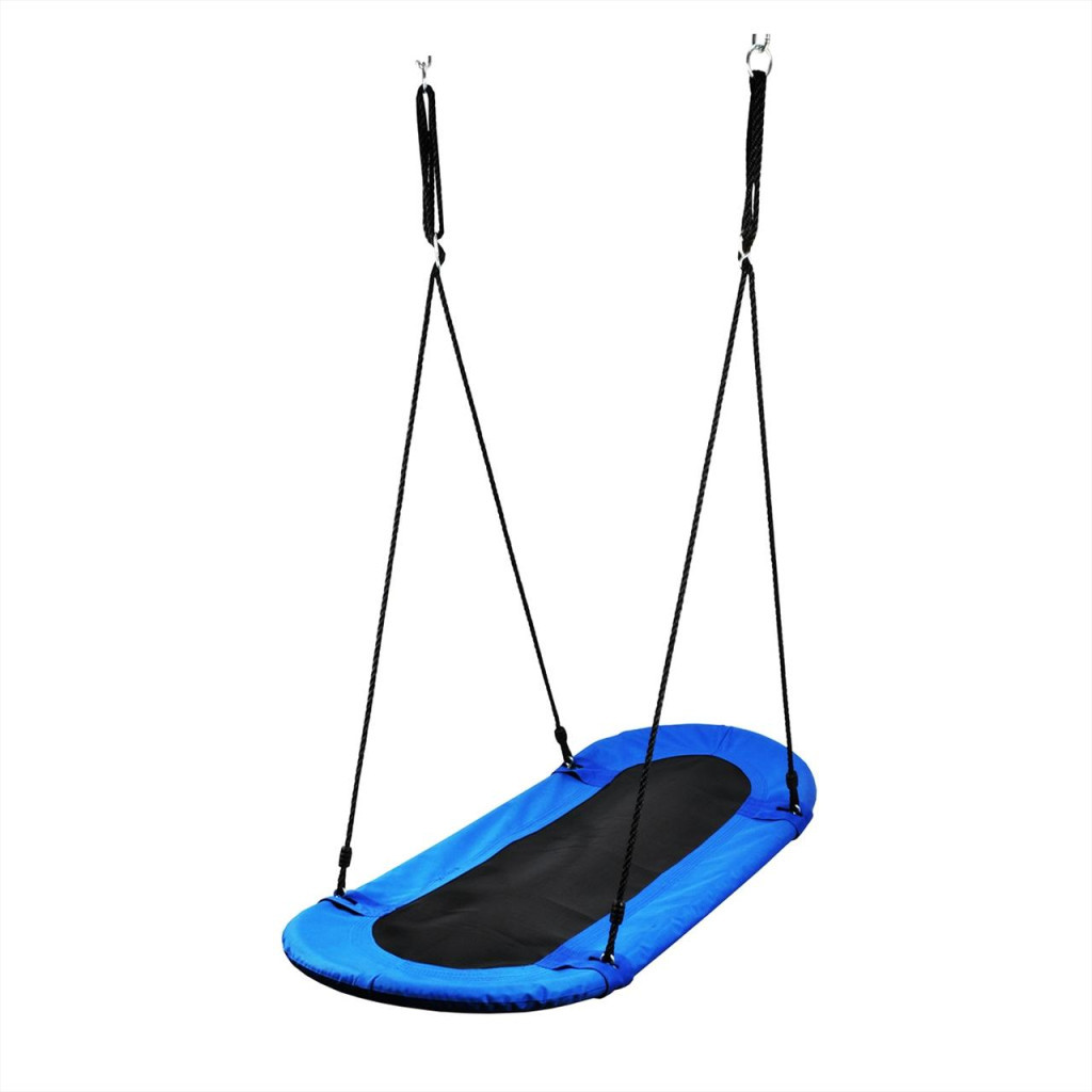 A klasszikus Wonderland ovális fészekhinta kellemes időtöltést garantál a szabadban, friss levegőn a passzív pihenésre vágyóknak. A 165 x 70 centiméteres fészekbe bekuckózhatsz akár többedmagaddal, könyvet olvashatsz, figyelheted magad körül a természetet, miközben kellemesen lengedezik a hinta a szellőben. Ez a változat kék színben érkezik. A hinta teherbírása 150 kg.