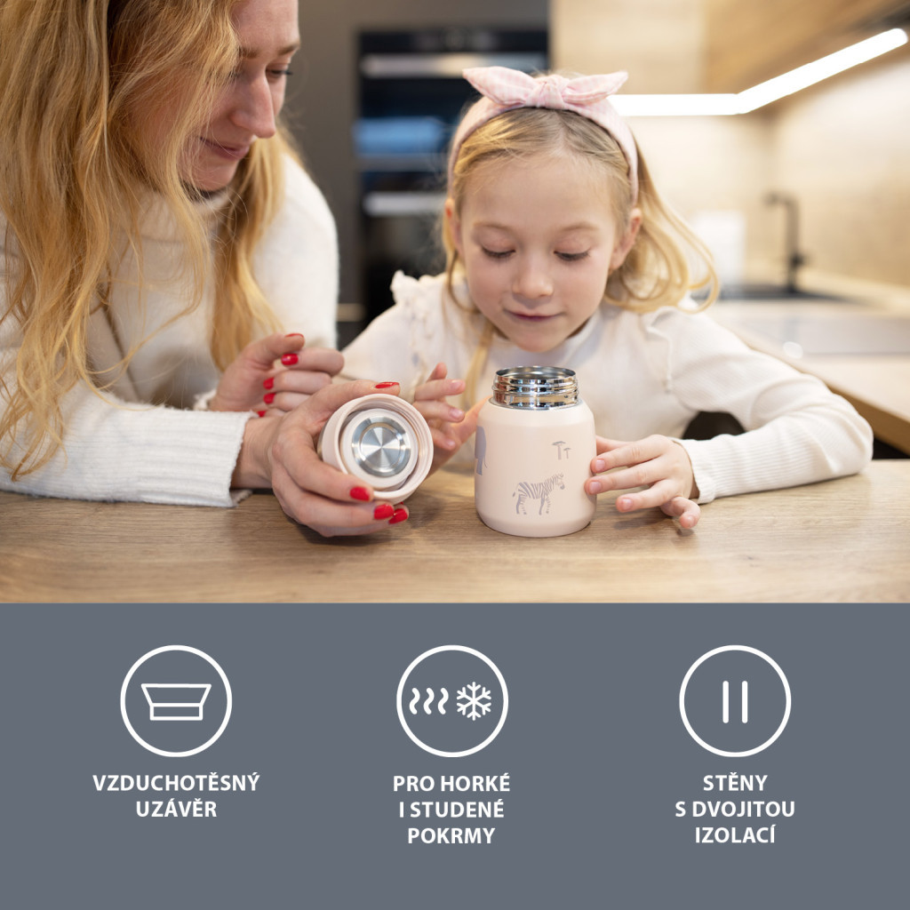 Meleg és hideg ételek tárolására, kiváló minőségű rozsdamentes acél, korrózió- és páralecsapódás-álló, szoros zárás, űrtartalom: 300 ml – ez az ételtermosz.