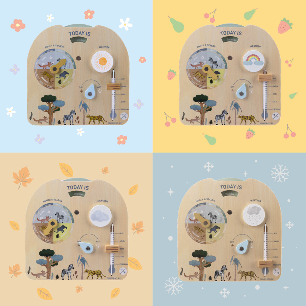 Fedezzétek fel együtt gyermekeitekkel az időjárás, a napok, az évszakok ésa hőmérséklet világát ezzel a gyönyörűen illusztrált Montessori fa táblával.Ez az oktatóeszköz ideális óvodás korú és kíváncsi gyerekek számára,akik szeretnék megismerni, mi történik a külvilágban az év során.Tanulás játékon keresztül – a lehető legjobb formában!