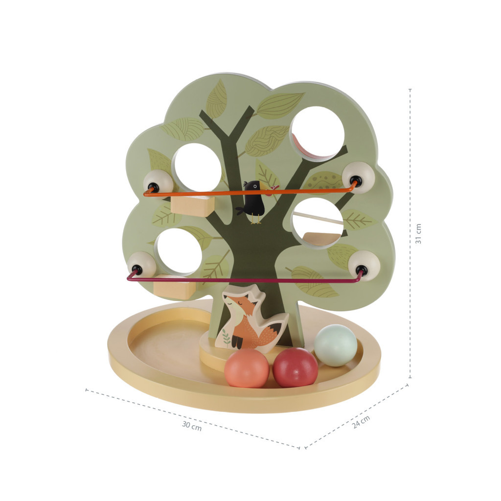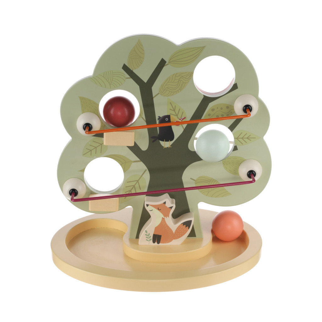 Fa fa formatervezés, golyók számára kialakított lyukak és pálya, kompakt méret, kiváló minőségű fa, vízbázisú festékek – ez a fa golyópálya.