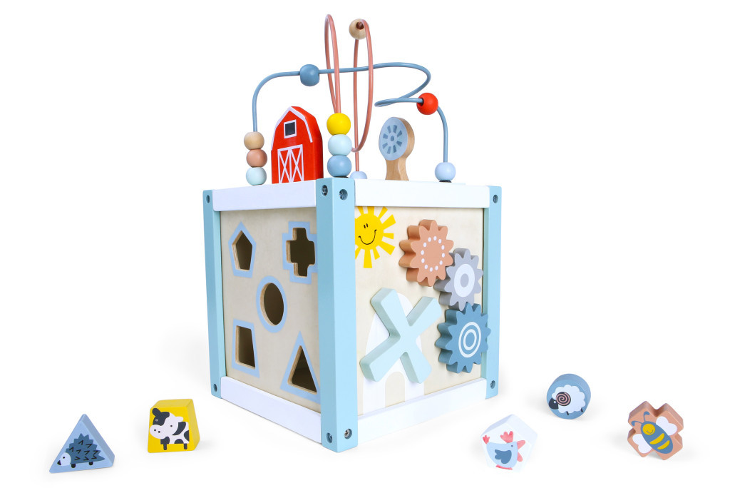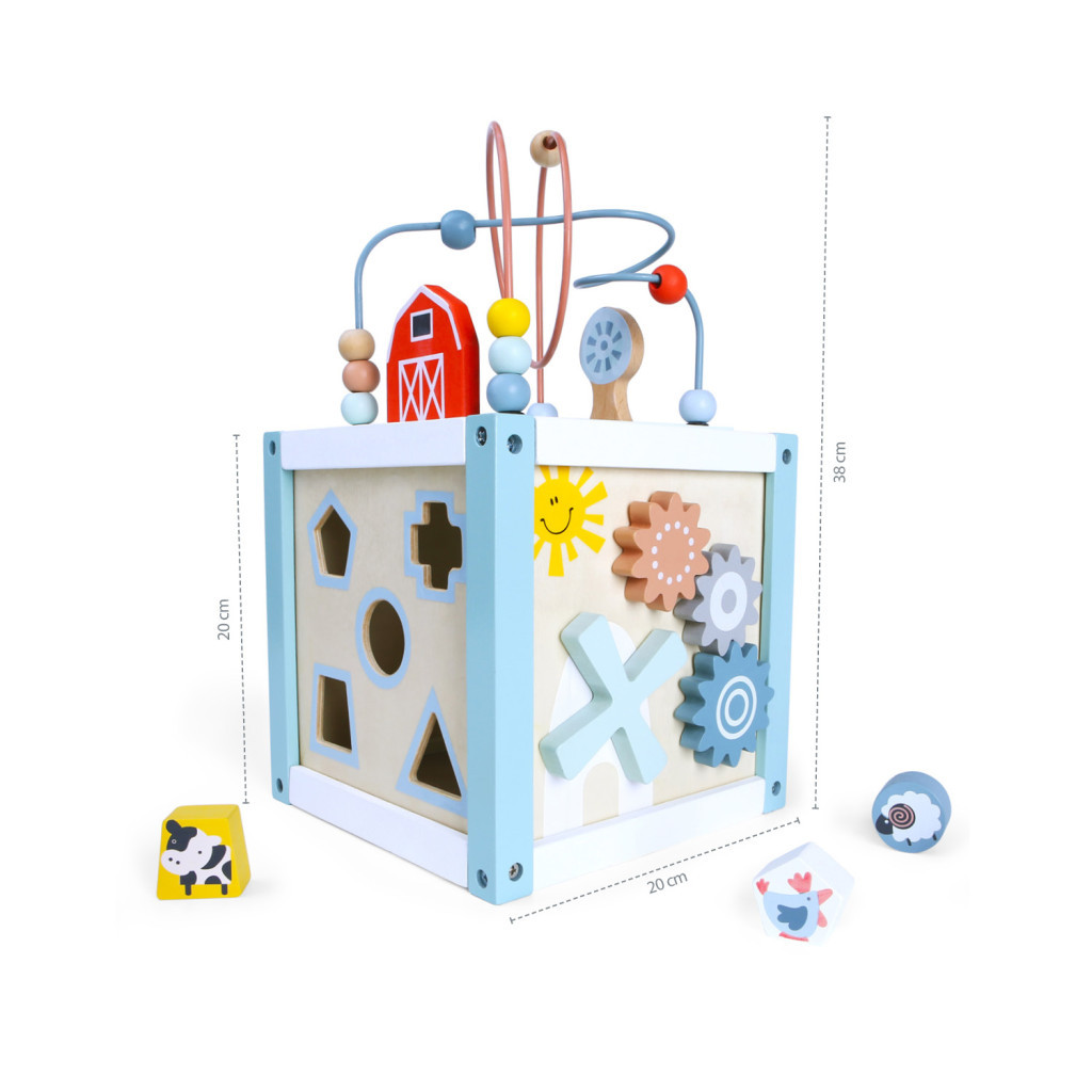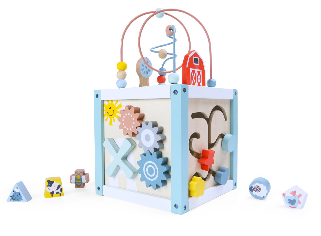 Minden oldala az aktivitási kockánknak rengeteg változatos szórakozást kínál. A gyerekek játék közben természetes módon tanulhatják meg a formákat, színeket, számokat és állatokat. A kockával való játék elősegíti a finommotorika, a logikai és térbeli gondolkodás, valamint a képzelőerő fejlődését.