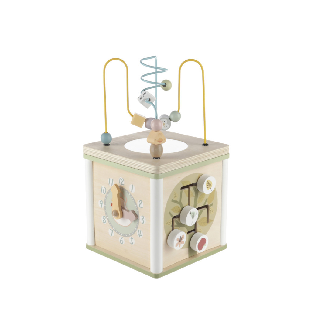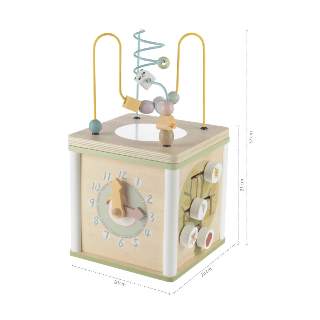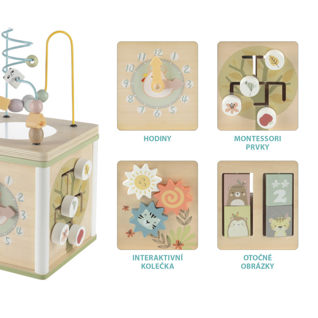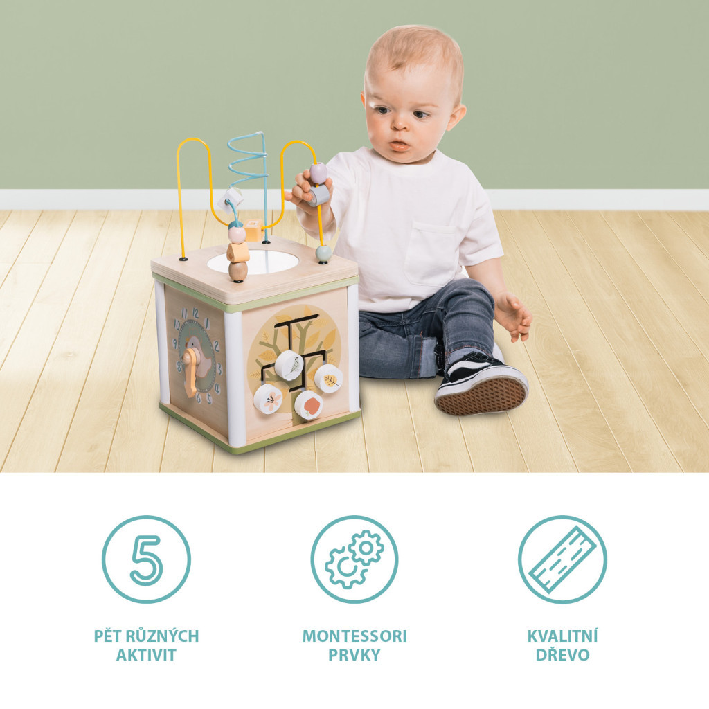 Kompakt méretek, kockában rejtett kirakó, kiváló minőségű fa, vízbázisú festékek, hosszan tartó szórakozás – ez a fa tevékenységi kocka.