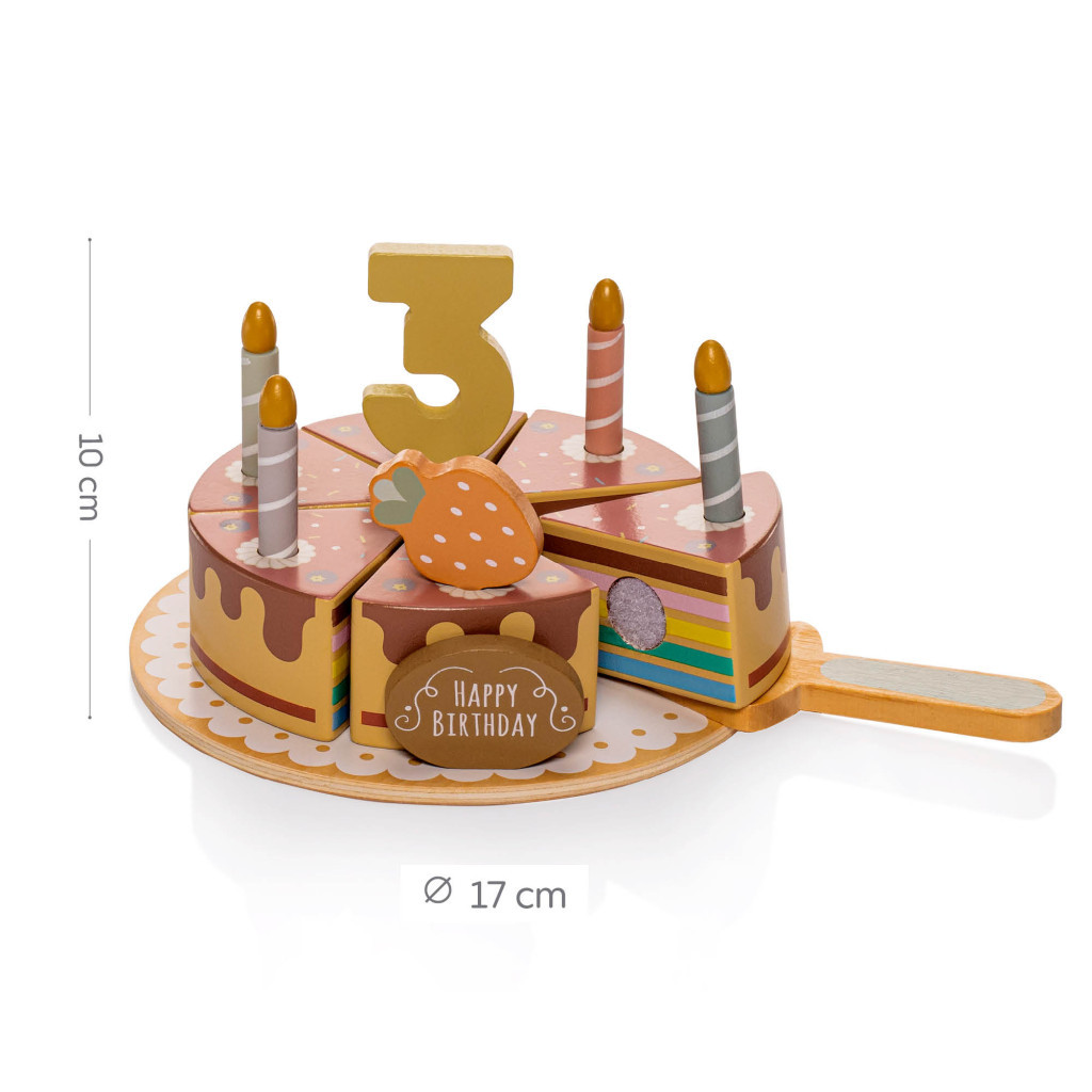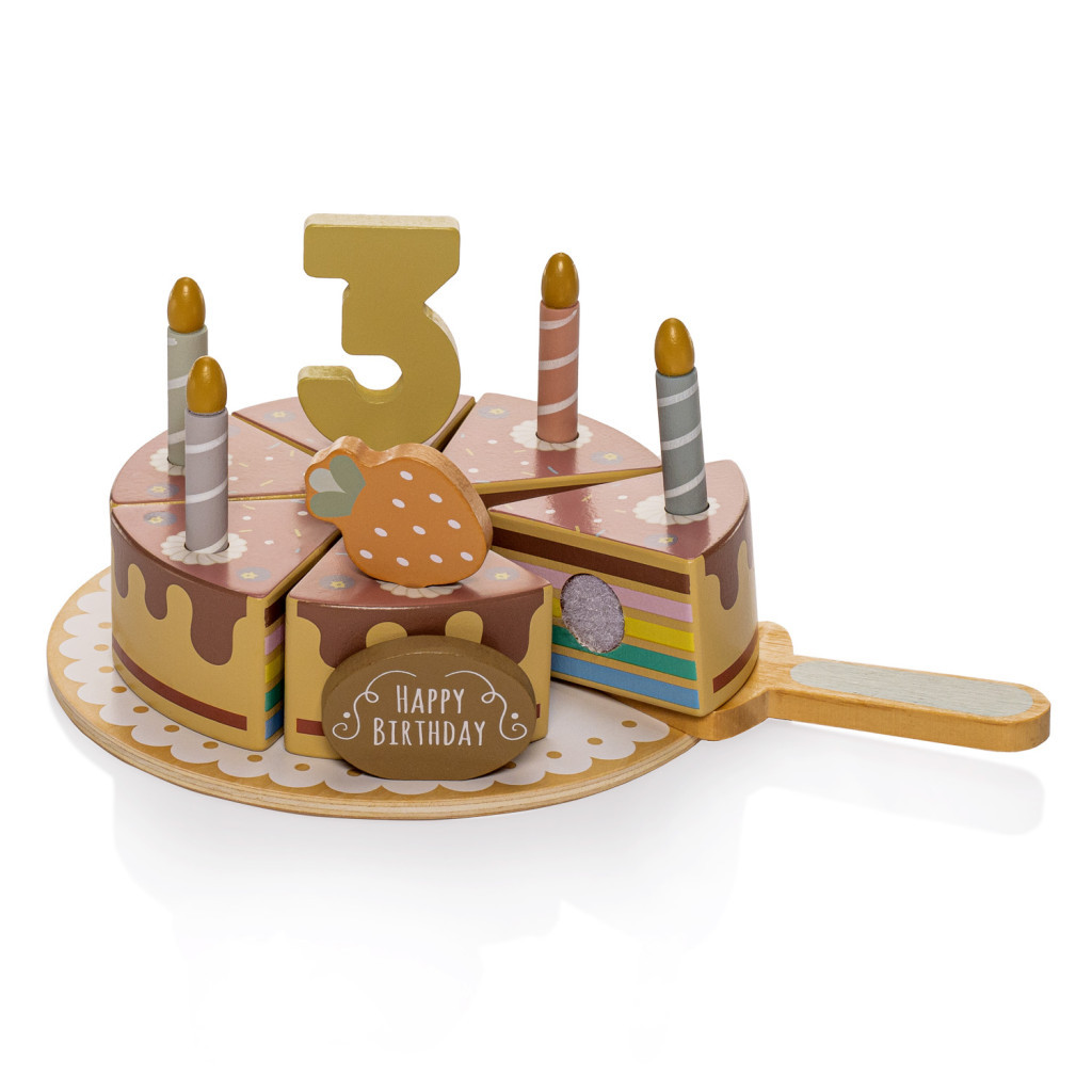 Ez a fa torta tökéletes ajándék születésnapra vagy bármikor. A gyerekek saját ünnepi szokásokat alakíthatnak ki – akár valós, akár képzeletbeli ünneplésről van szó. Időtlen dizájnja és természetes anyagai miatt bármelyik gyerekszobát is bájos dekorációval gazdagítja.
