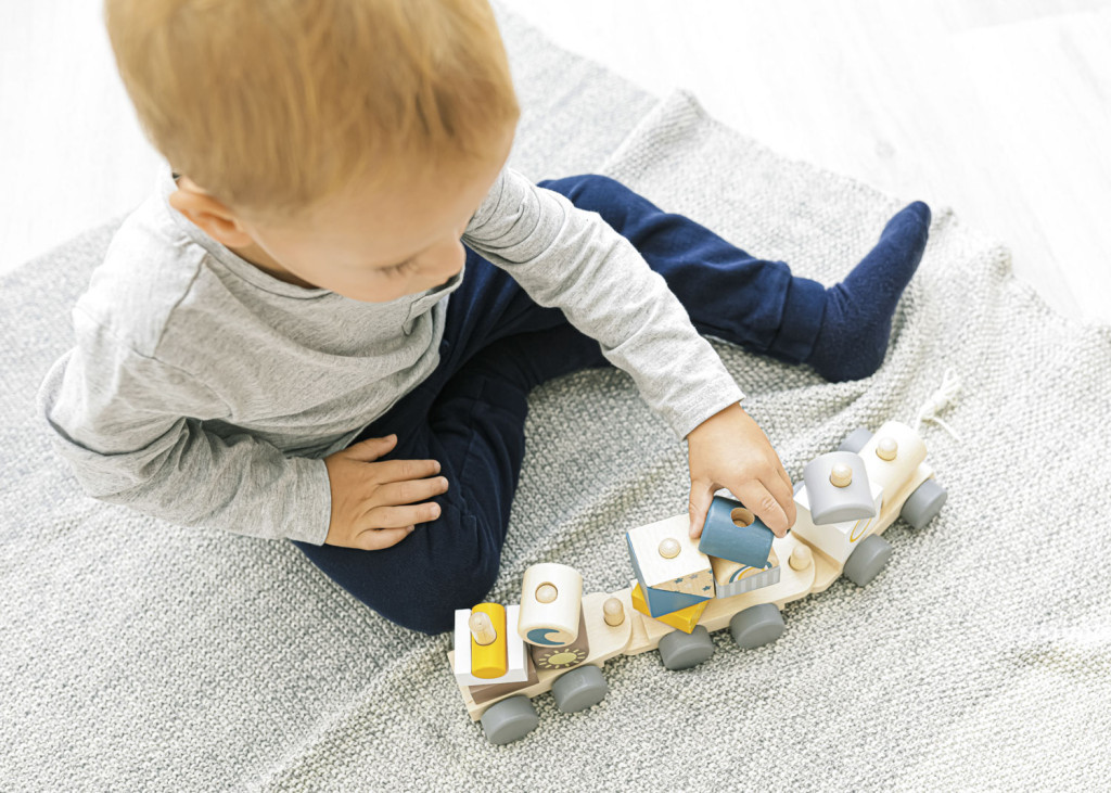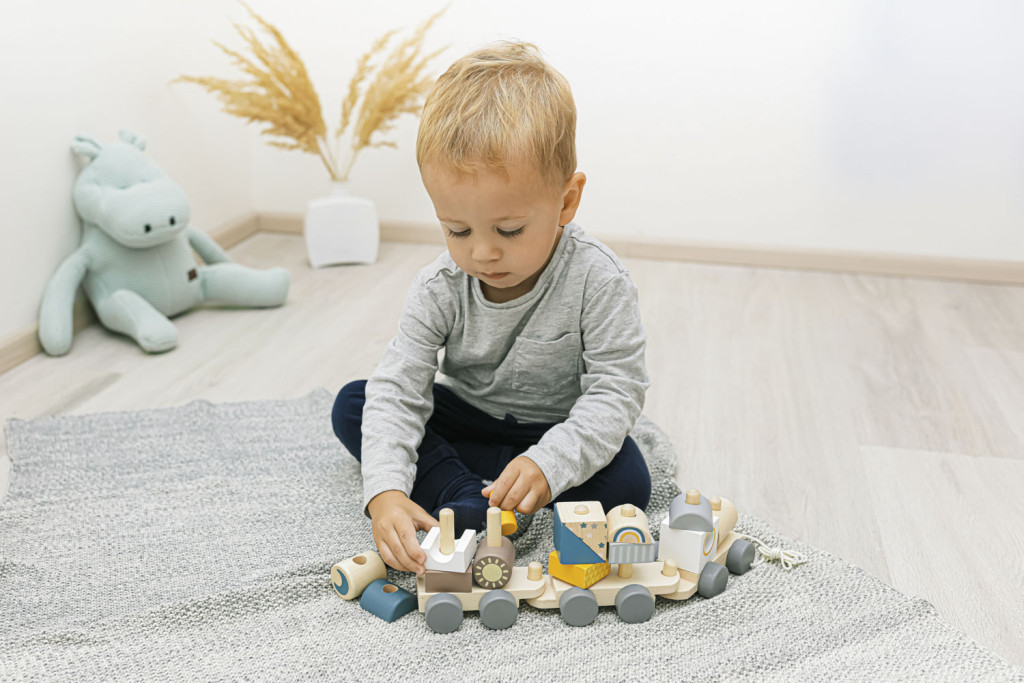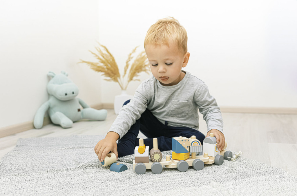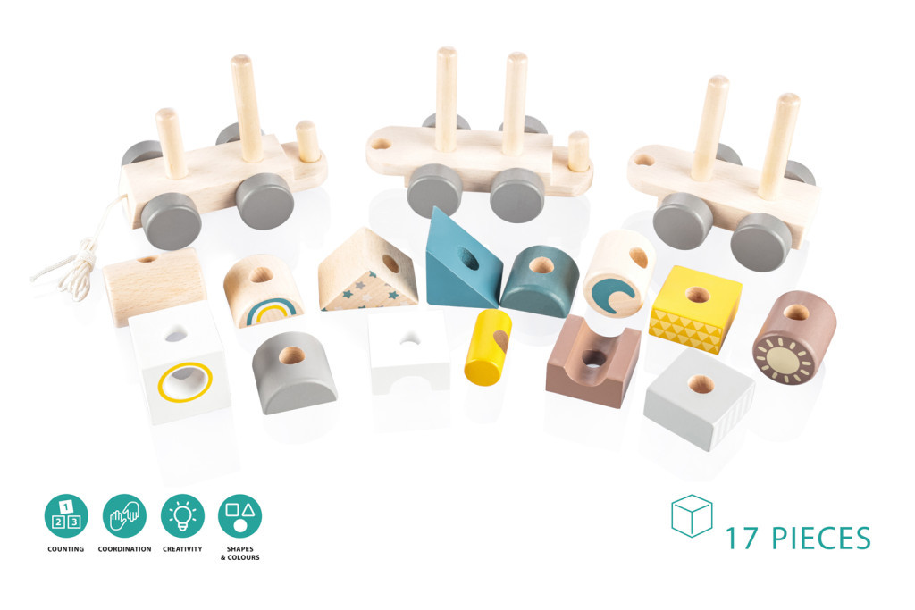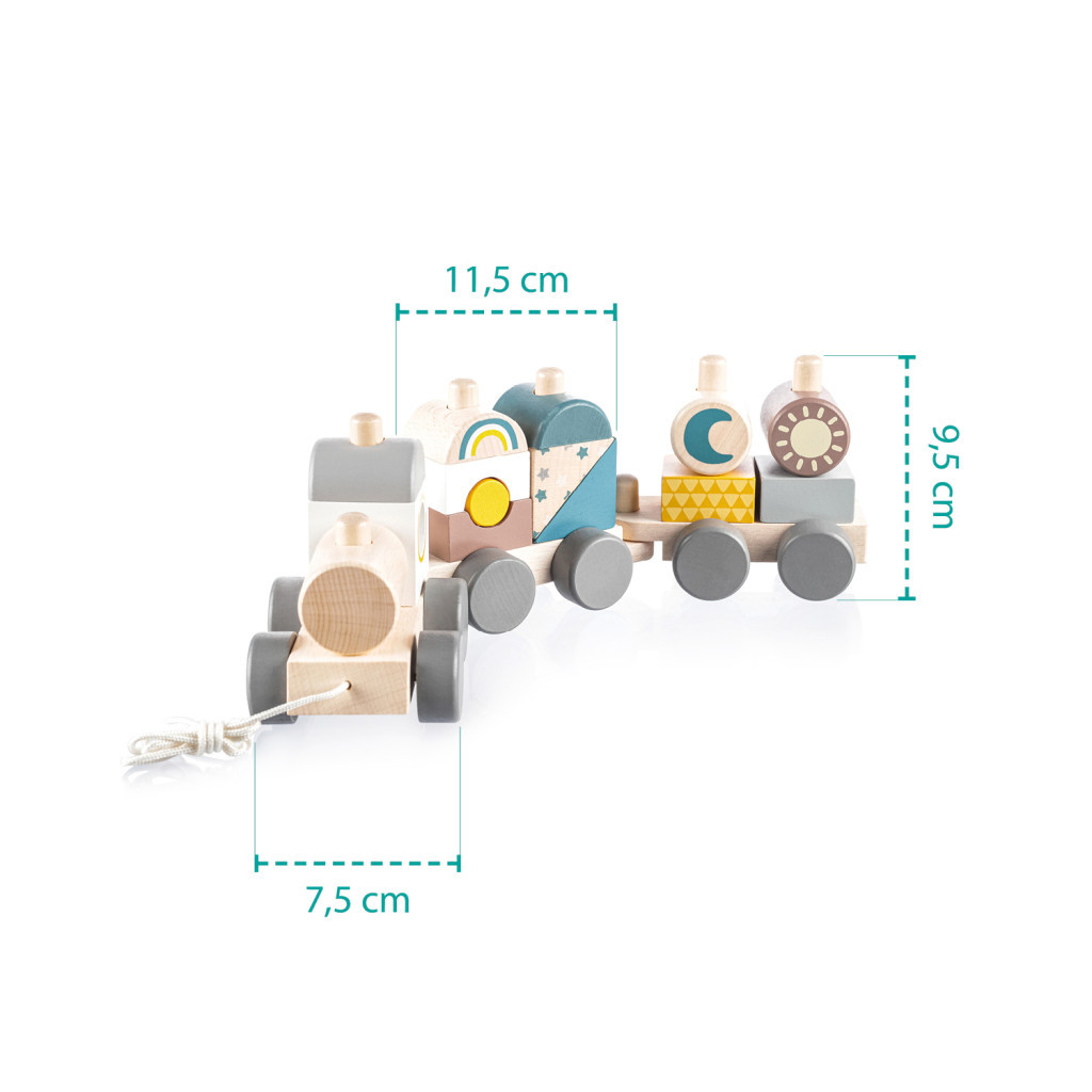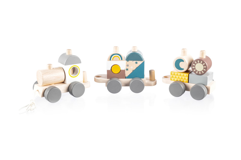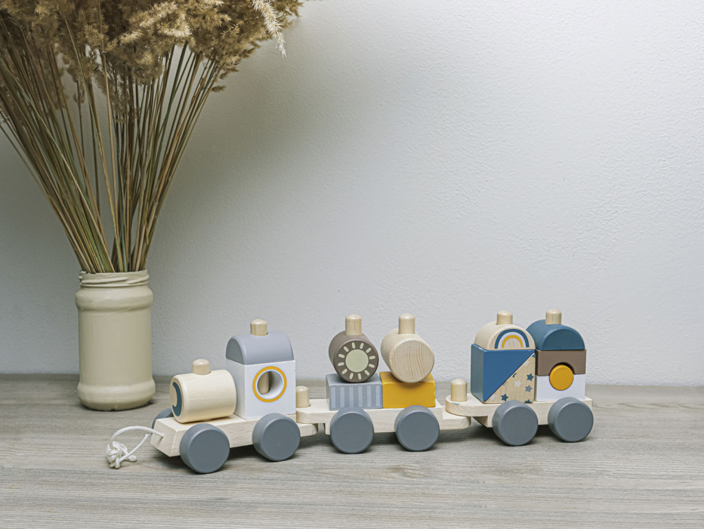 Fa húzható vonat gyerekeknek, akiknek motivációra van szükségük a járáshoz.
