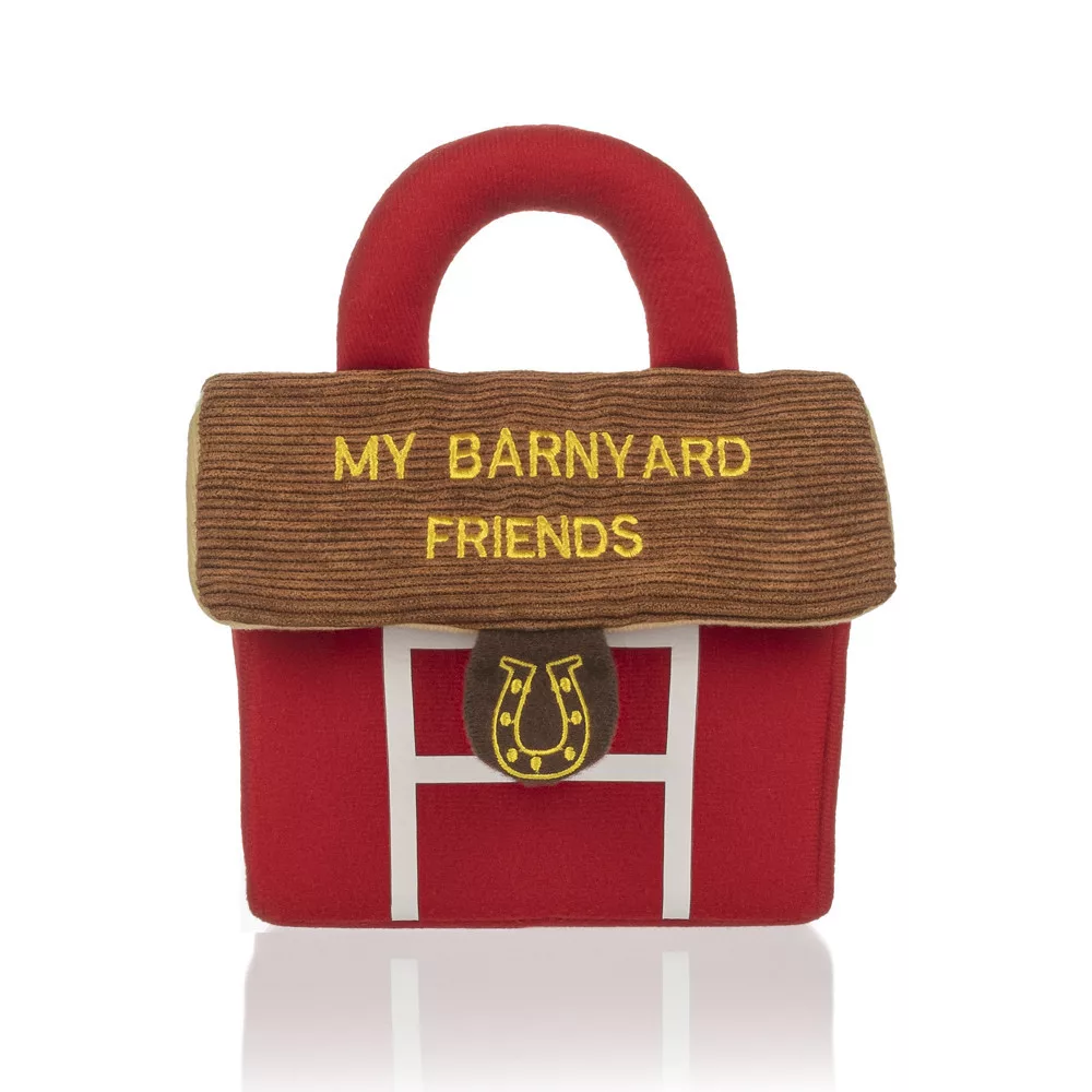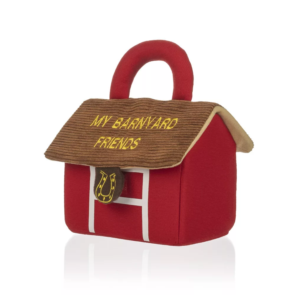 Egy aranyos plüss házikó állatbarátokkal, amely szórakoztatja a gyerekeket, miközben támogatja az érzékszervi és mozgásfejlődésüket.