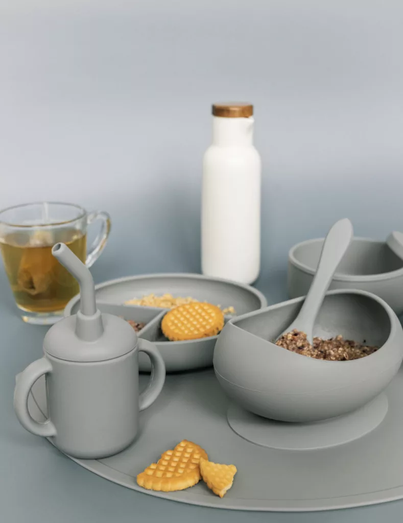 A tál biztonságos élelmiszeripari szilikonból készült, amely nem mérgező és törésálló. A kisgyermekek számára a szilikon természetesebb, mint a műanyag vagy a fém. A gyerekek gyakran a szájukon keresztül fedezik fel a világot, és a tállal való játék közben sem áll fenn a sérülés veszélye, mivel az rugalmas, puha, mégis rendkívül tartós anyagból készült. Az erős, csúszásmentes tapadókorong biztosítja, hogy a tál az asztalon vagy az etetőszék tálcáján maradjon, megakadályozva a felborulást vagy leesést, és még a játékosabb gyerekeknek is nehéz lesz felemelni és ledobni.