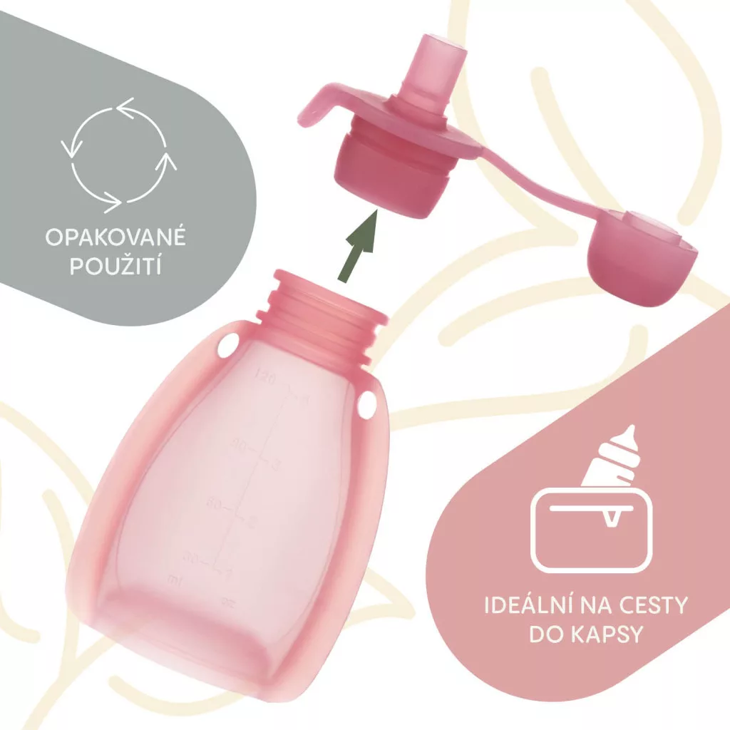 Biztosítsa gyermekének a friss és egészséges uzsonnát újratölthető szilikon tasakunkkal, amelyet házi gyümölcspürével vagy más finomságokkal tölthet meg. Tökéletes kirándulásokra, sétákra vagy iskolába. A biztonságos, zárható kupak frissen tartja a tartalmat és megakadályozza a kiömlést.