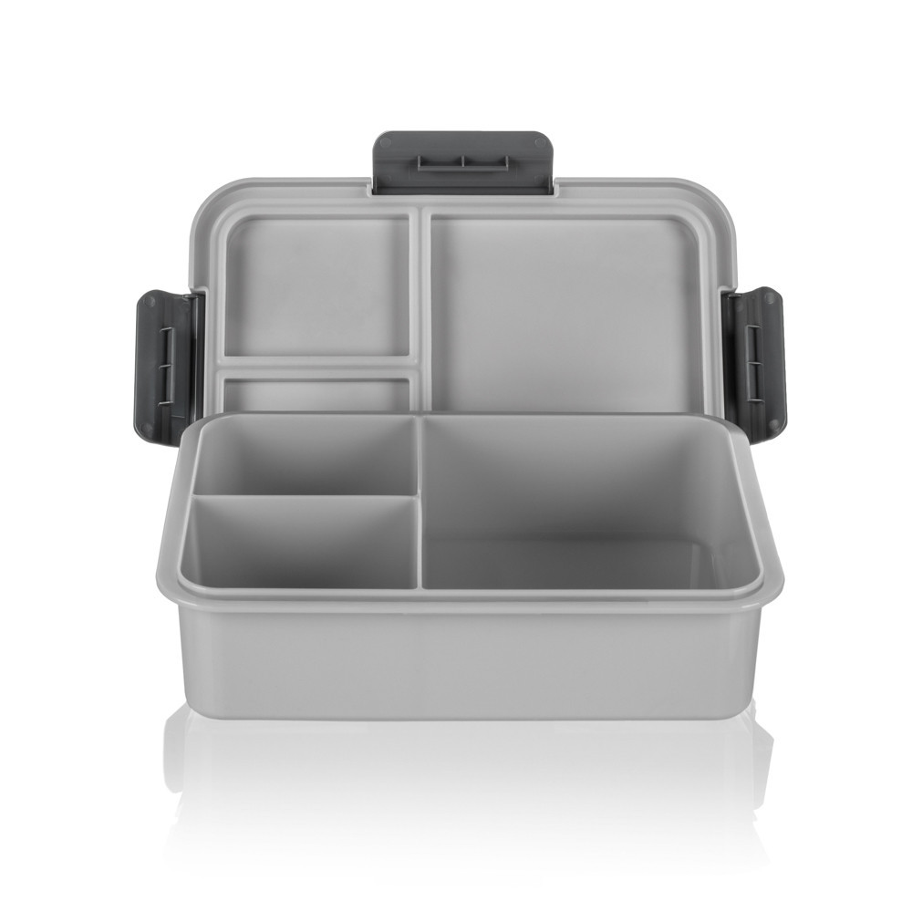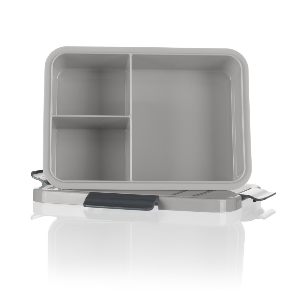 Praktikus, 1120 ml-es uzsonnás doboz három különálló rekesszel. Szivárgásmentes, tartós, BPA-mentes – mosogatógépben, mikrohullámú sütőben és hűtőben is biztonságosan használható.