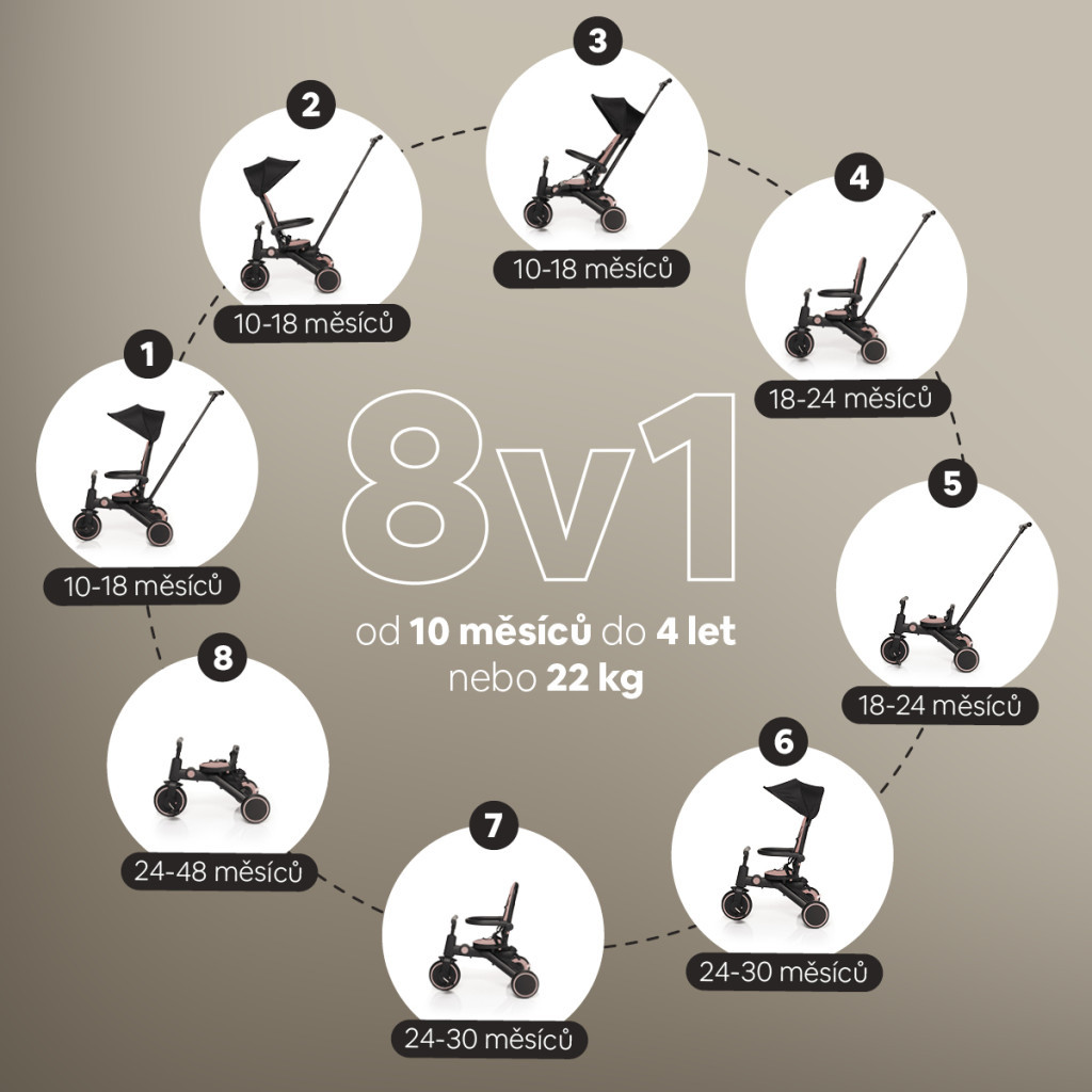 Egy játékosabb alternatívát keres a babakocsi helyett? Az X Trike Pro egy multifunkcionális tricikli, amely 10 hónapostól 4 éves korig együtt nő gyermekével. Segít fejleszteni az egyensúlyt és a koordinációt, hogy a későbbiekben könnyebben áttérhessen a futóbiciklire vagy a kerékpárra. Hagyja, hogy kis felfedezője három keréken fedezze fel a világot, szerezzen önbizalmat a mozgásban és elsajátítsa az önálló közlekedés alapjait.