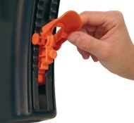 Gyerekbiztos, szülő-barát biztonsági csattal szerelték fel. Két mélység-beállítással rendelkezik, egy kézzel ki- és becsatolható.