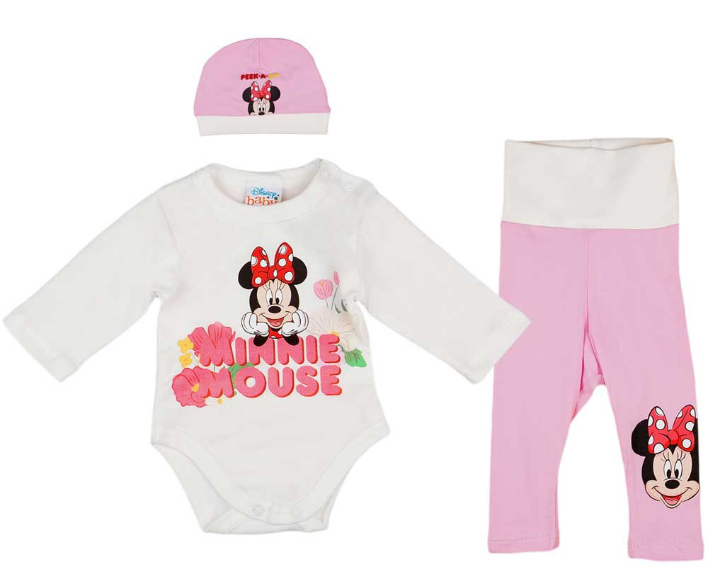 3 részes baba kislány szett Minnie virágos mintával Eredeti Disney termék Tündéri 3 részes baba Minnie virágos szett. Amihez tartozik egy babarózsaszín body, lábközött és vállnál patentos. Egy kisnadrág gumis derékkal, és egy hozzá illő baba sapka, ami nagyon praktikus a tavaszi szél ellen védi a kis füleket. Világosrózsaszínű rajta egy apró Minnie nyomással. Enyhén nyúlik az anyaga, ami biztosítja hogy nem fog lecsúszni a babák fejéről. Könnyen kezelhető jól mosható, szín és forma tartó. Minőségi magyar termék Anyaga: 100% pamut Nadrág és sapka anyaga: 90% pamut, 10% elasztán Minőség: I. osztály A termék nikkelmentes patenttal készül. A patent nem tartalmaz nikkelt, ezért nem vált ki allergiás reakciót az erre érzékeny babáknál.