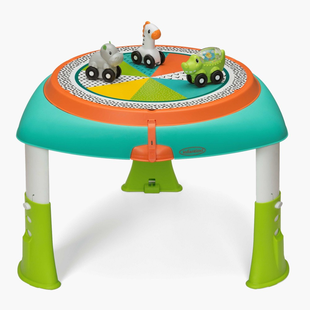 Három magassági beállítással rendelkezik a kényelmes testhelyzethez. Amint a kicsi sétál, alakítsa át kisasztallá, ahol három guruló állattárssal kötheted le gyermeked figyelmét. Amikor a játékidő véget ért, a játékok másodpercek alatt összecsukódnak, a lábak pedig az asztal alá.