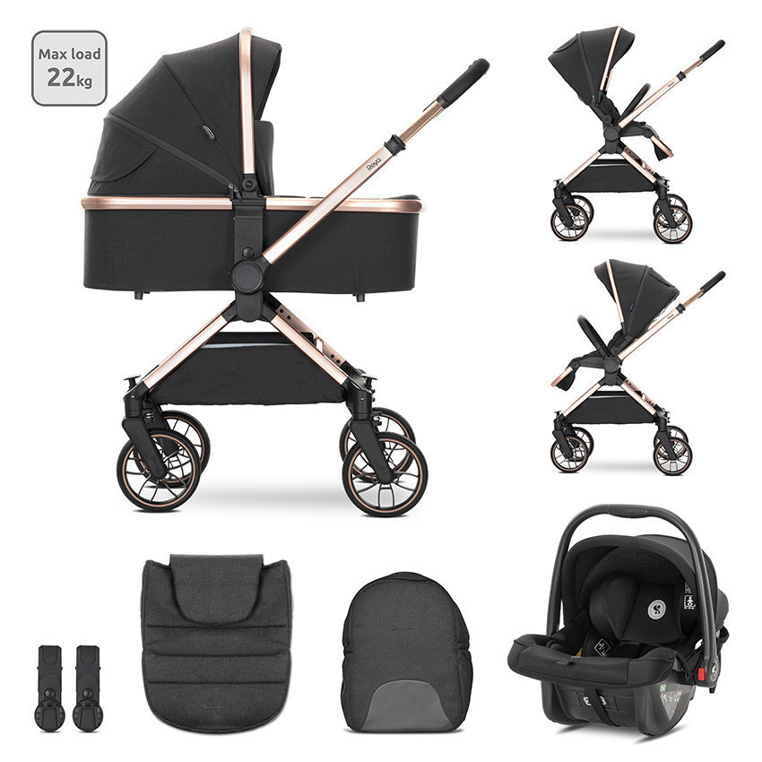 Lorelli Reya 3az1-ben multifunkciós babakocsi átfordítható tolókarral + Joy autóshordozó - Black Jasper