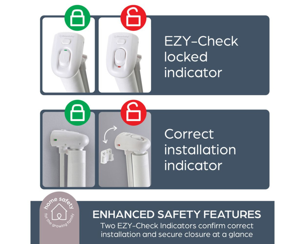 ÚJ Dreambaby Glide 'n' hide xtra biztonsági ajtórács 140 cm-ig - fehér