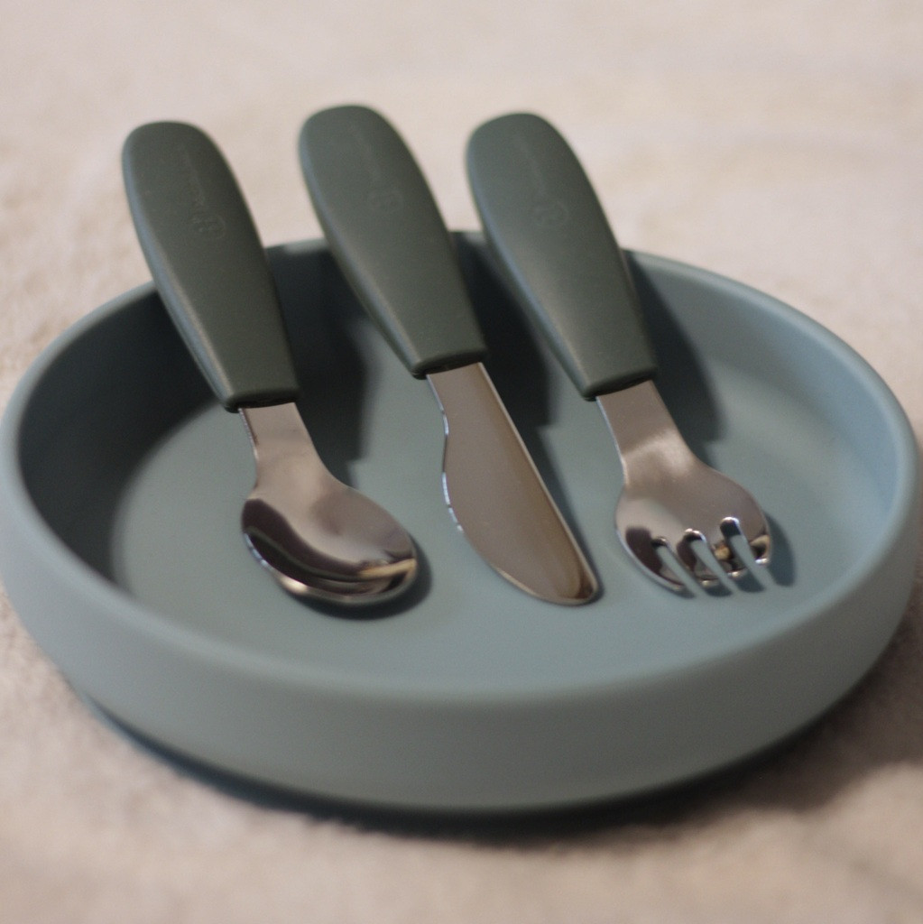Petite&Mars Rozsdamentes acél evőeszközkészlet Take&Match Frosted Sky 12m+